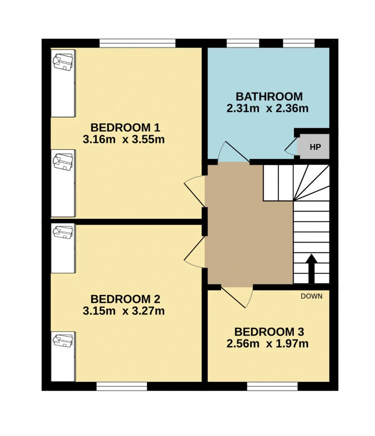 Bedroom 3 2.56m x 3,27 Good sized single bedroom with wood flooring.