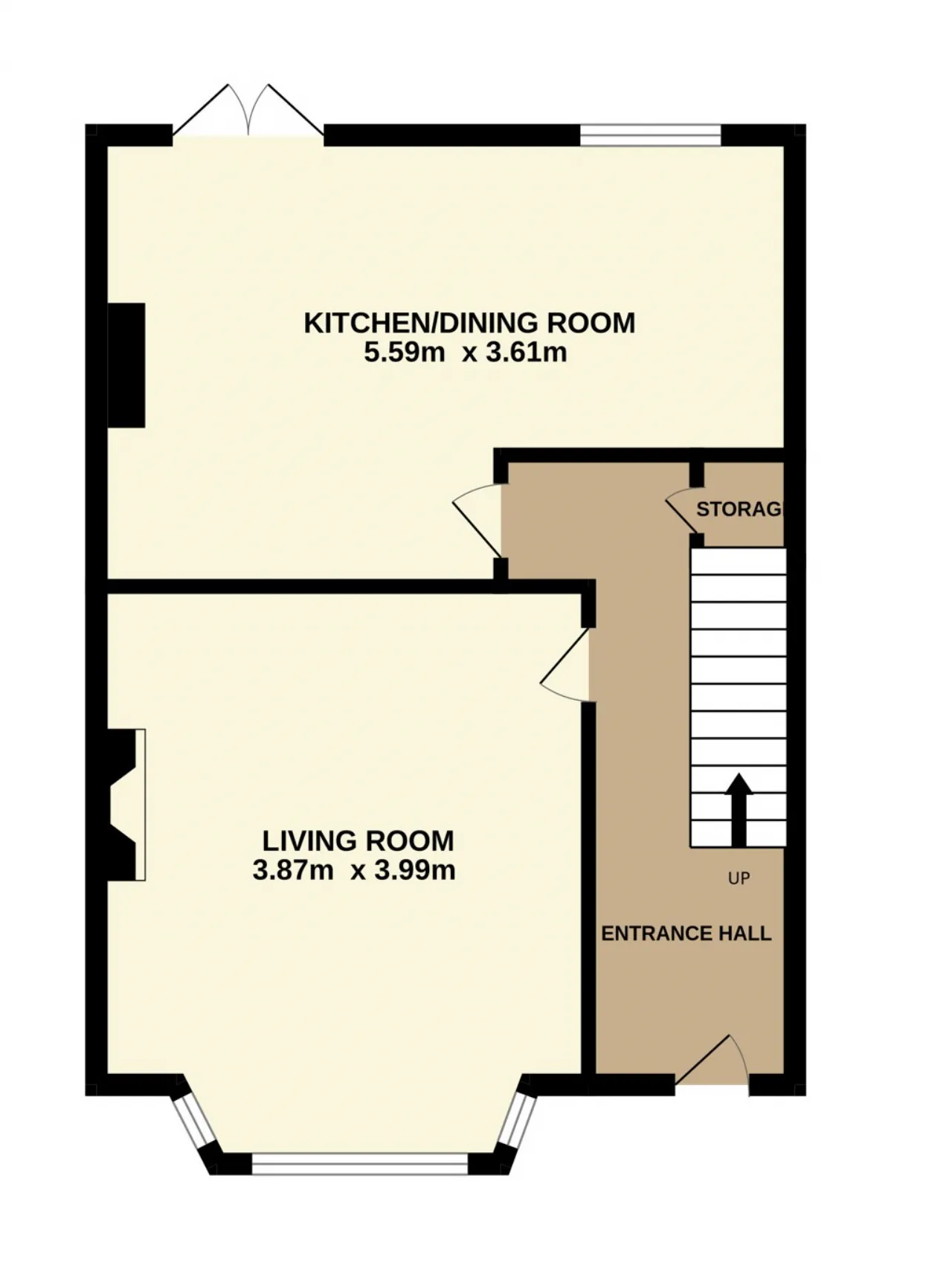 Living Room 3.99m x 3.87m Lovely bay window living room with laminate wood flooring and electric fireplace.