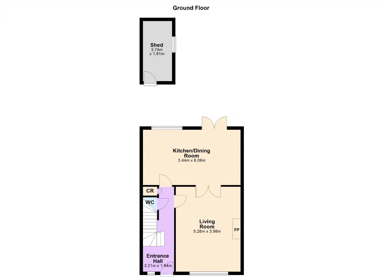 En-Suite 1.46m x 2.28m Fully tiled, shower with rain head attachment, W.C, wash hand basin.