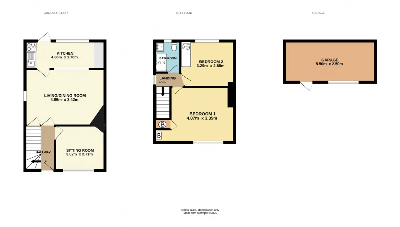 Kitchen 4.86m x 1.70m Fitted with base/wall units with ample worktop space, tiled splashback, plumbing for washing machine, space for undercounter fridge/freezer, inset sink with mixer-tap, space for free standing oven/hob, wall mounted radiator, laminate flooring and door opening to the garden.
