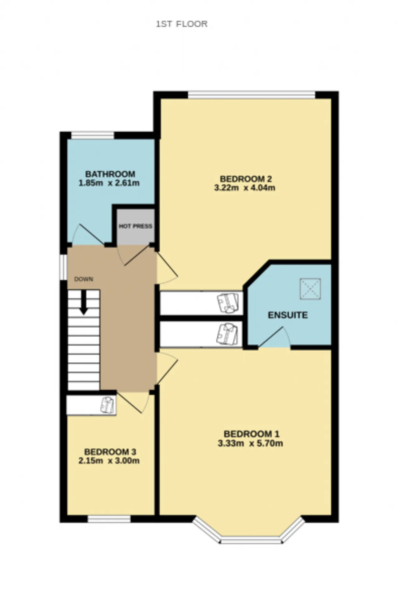 Bedroom One 3.33m x 5.70m With carpet and fitted wardrobes.