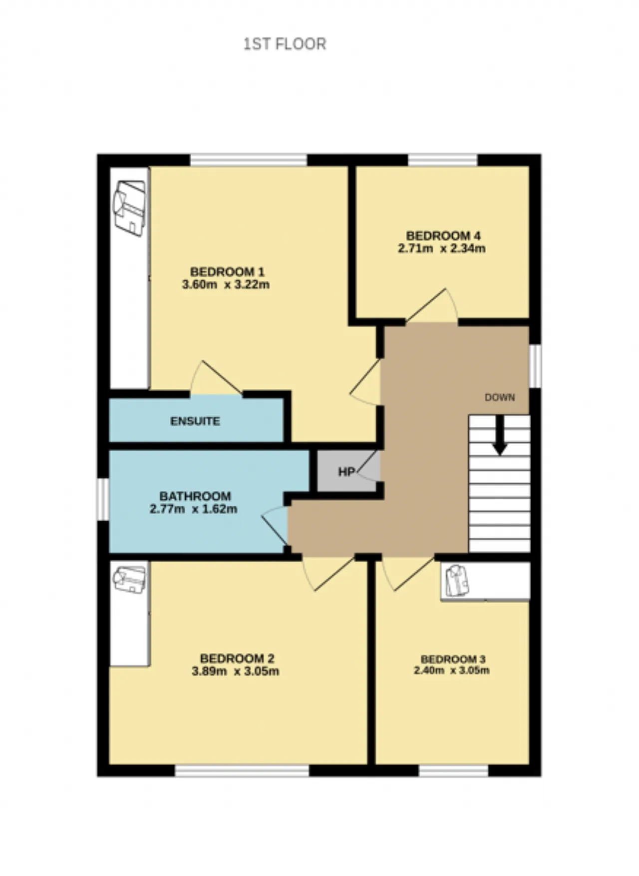 Upstairs, there are four well-sized bedrooms, including a master suite with an ensuite bathroom, along with a stylish family bathroom.