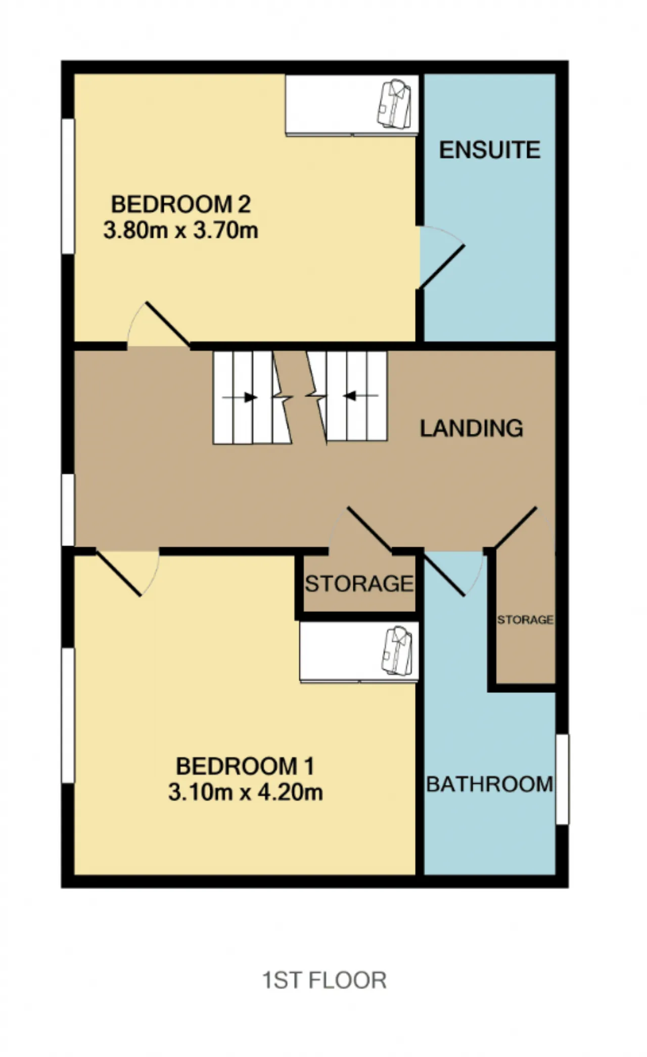 Bedroom 2 Double bedroom with laminate flooring, fitted wardrobes and window to front.