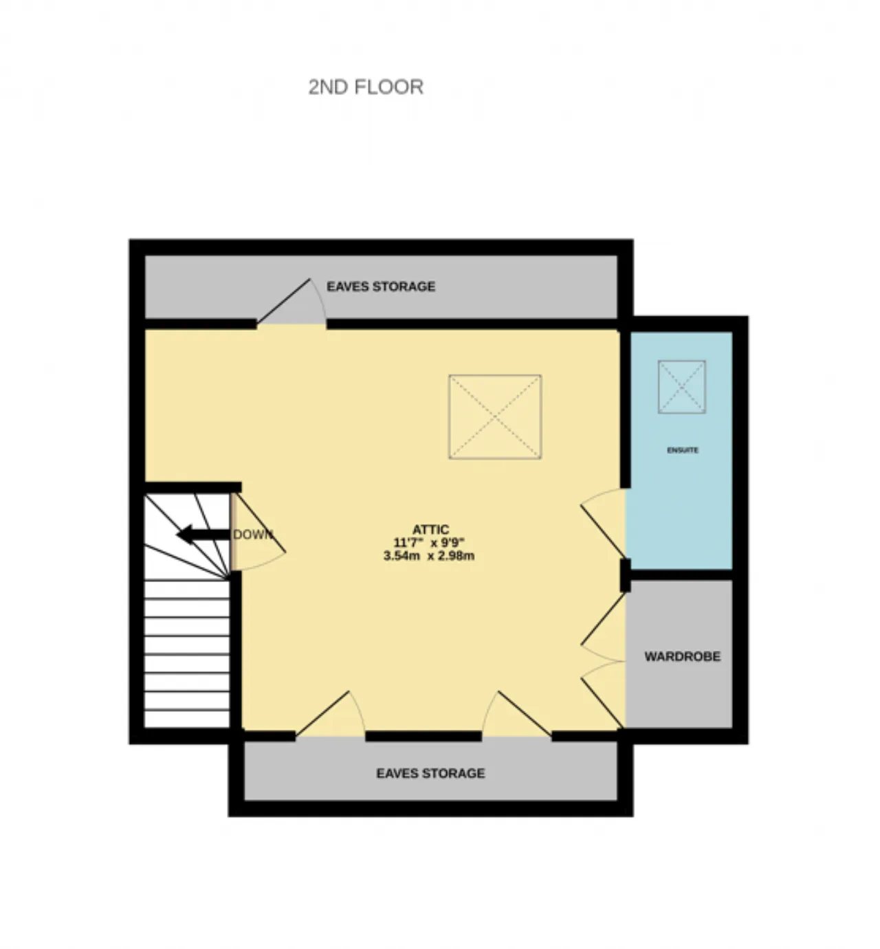 Attic 3.54m x 2.98m A converted attic - a versitile space perfect for guest accomodation, home office, TV Room. With WC
