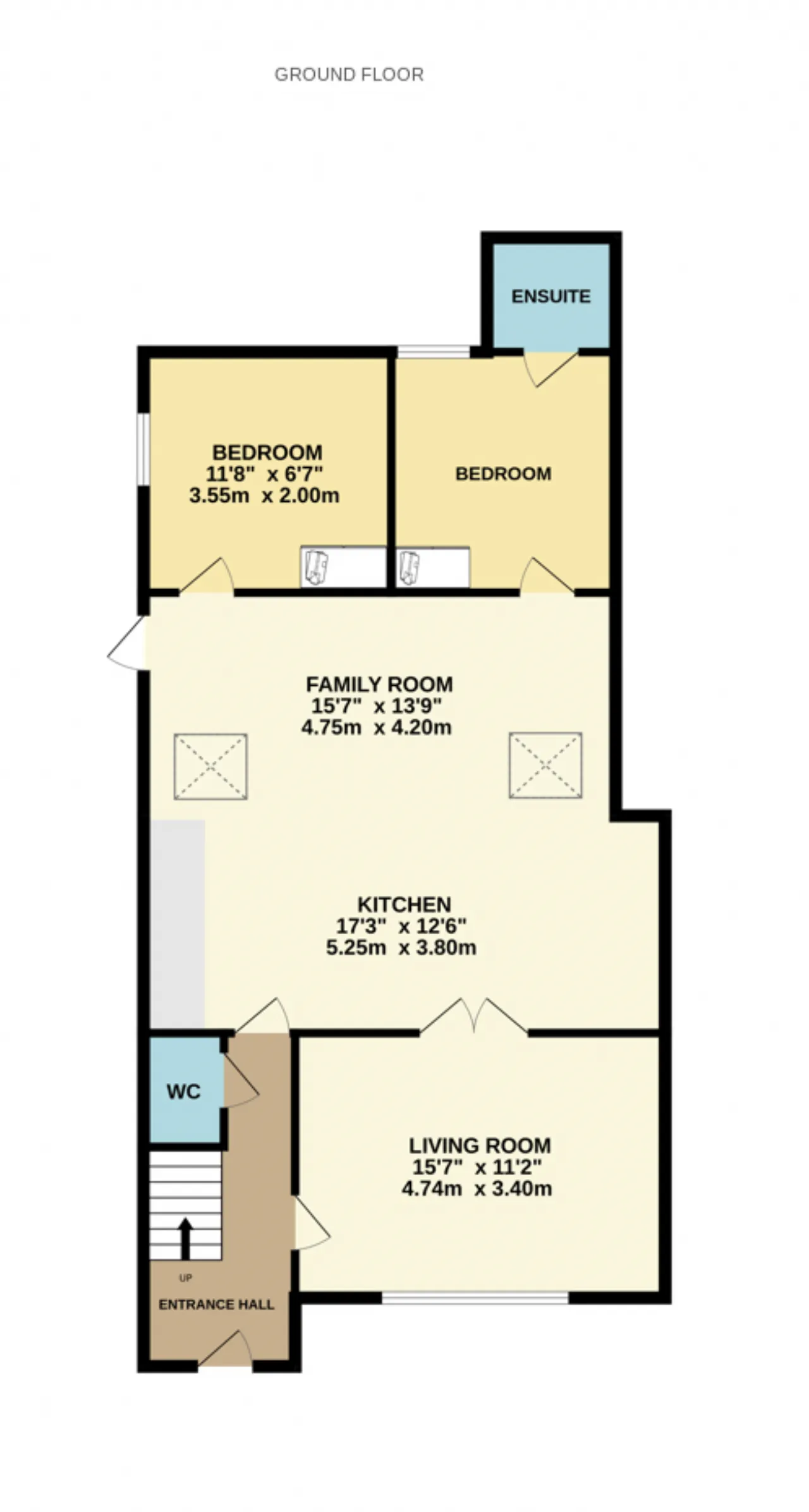 Bedroom 5 3.55m x 2.0m Ground floor bedroom, located to the rear.