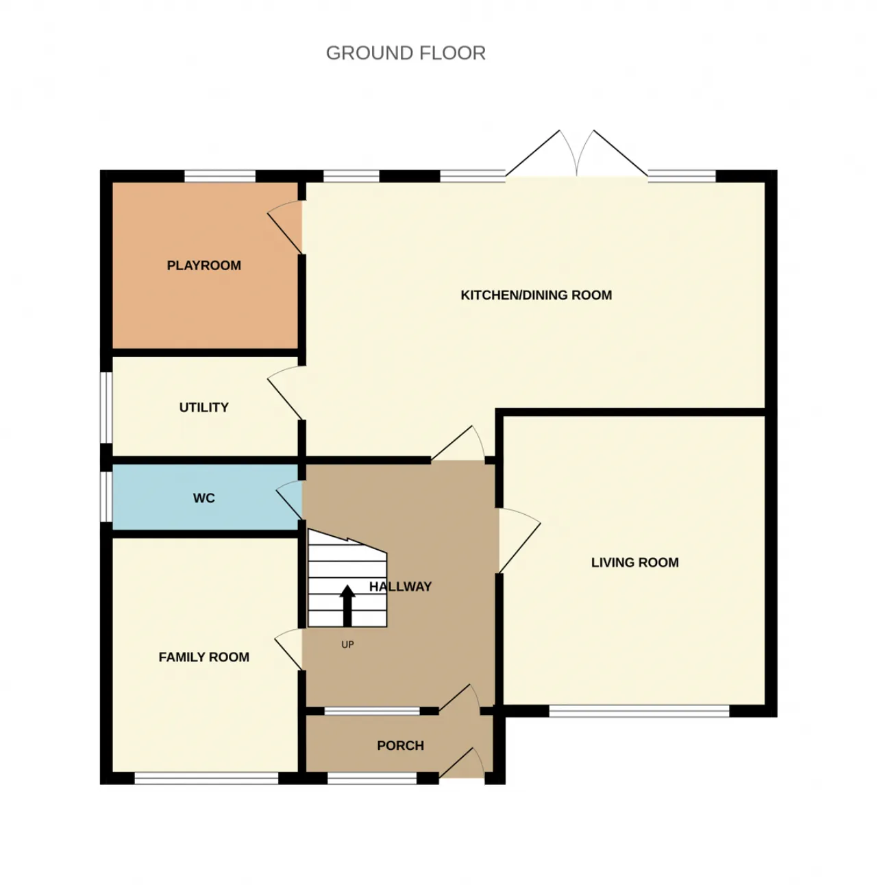 Hidden beneath its distinctive façade lies gracious well-planned accommodation, cleverly extended to the rear perfect for family living. Accommodation briefly comprises at ground floor level porched entrance, reception hall, large lounge, open plan kitchen dining area, utility room, playroom and a guest w.c. To the front the garage has been converted to provide a third reception room an ideal study/TV room.
