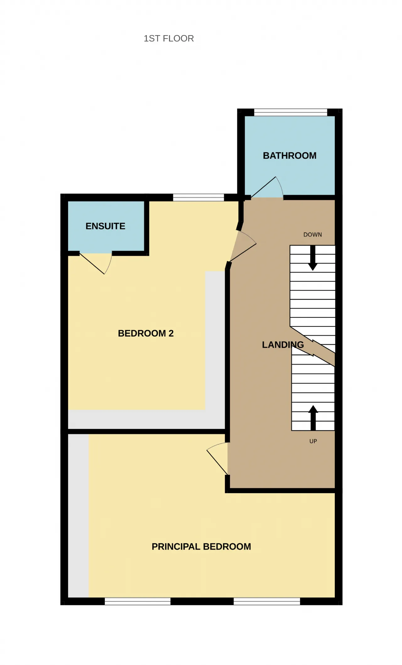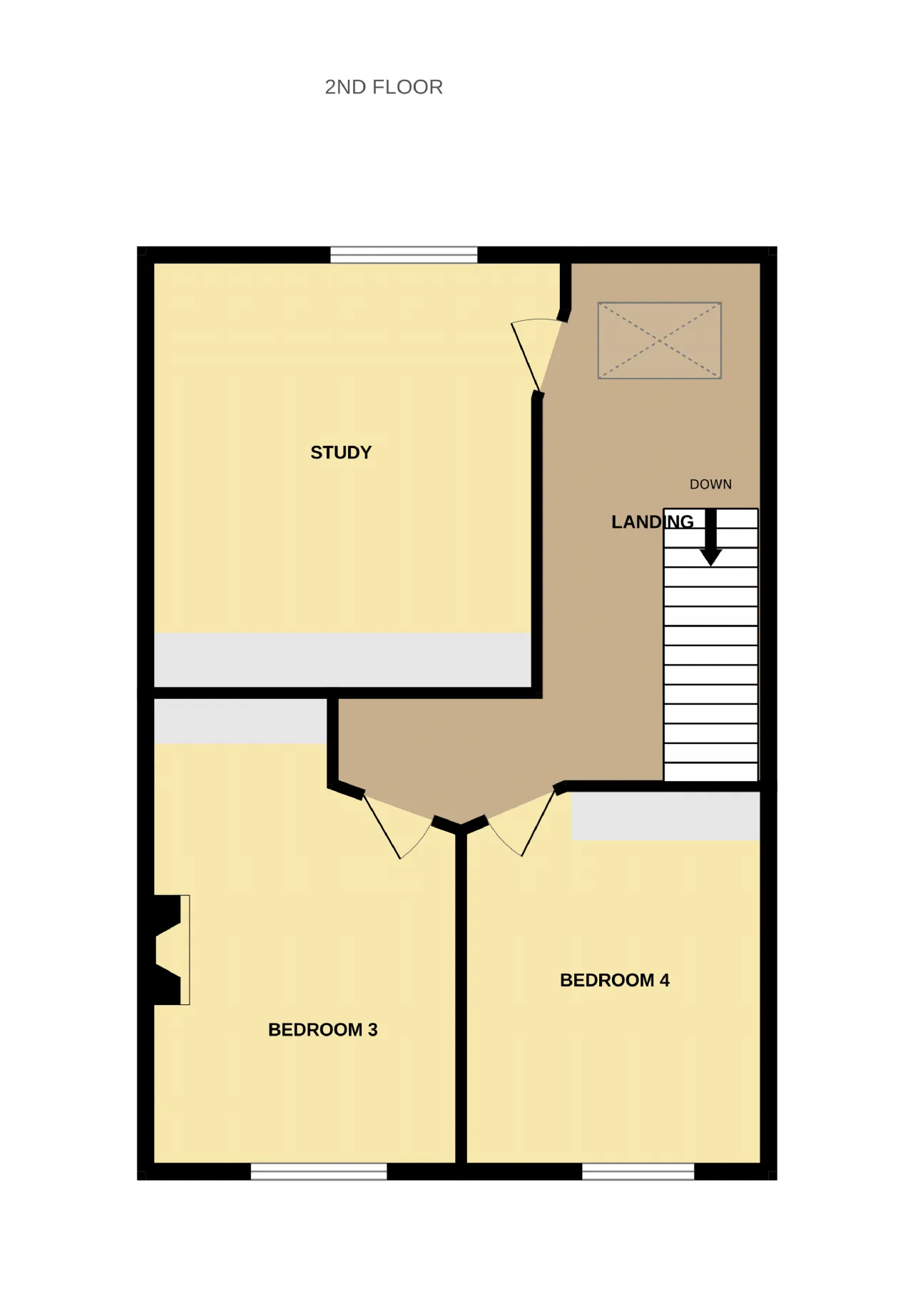 Upstairs, the principal suite enjoys double windows and extensive wardrobes, while the second bedroom benefits from its own ensuite. A stylish family bathroom completes the first floor. The top level provides three further versatile rooms – perfect as bedrooms, a home office or creative studio.