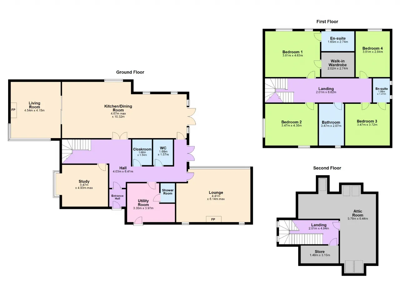 Upstairs there are four very large double bedrooms, two of which are ensuite, and the main bedroom also has a walk-in wardrobe. There is also a large luxurious family bathroom with free standing bath.