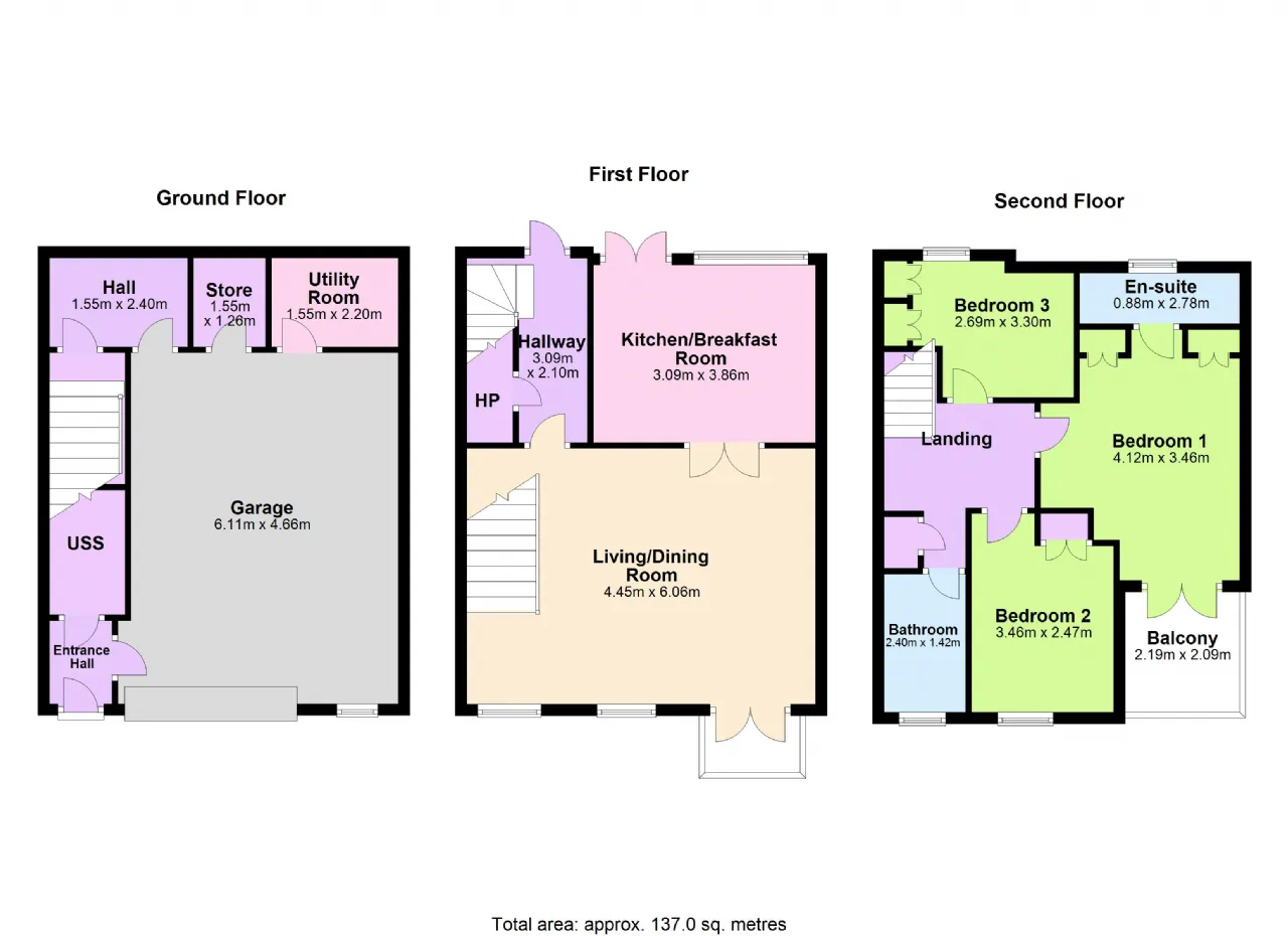 Hallway 3.09m x 2.10m Under stairs storage, stairs leading to sleeping accommodation