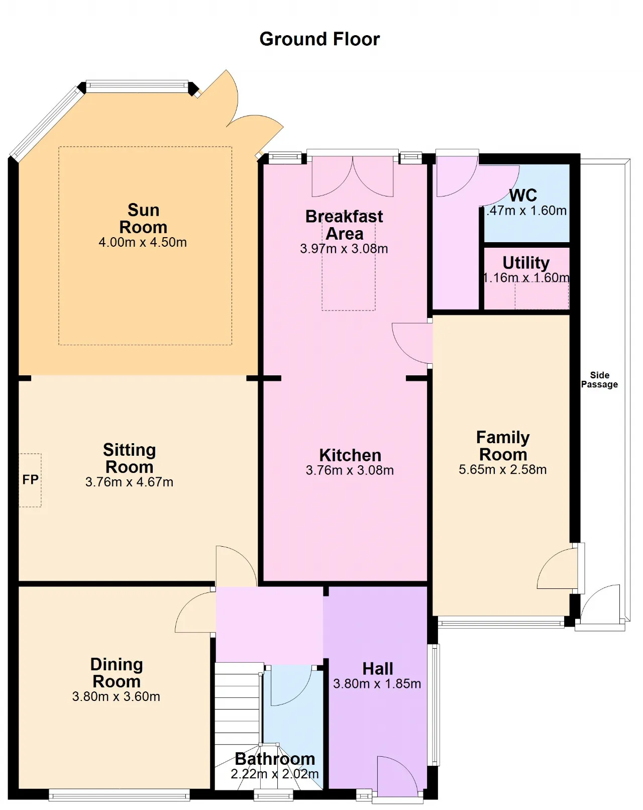Internally the accommodation comprises a wide welcoming reception hall with an arch to an inner hall with bathroom. A living room opens into a beautiful large sunroom overlooking, and opening into the rear garden, this room is flooded in the natural southerly light. From here a glazed door opens into a kitchen/breakfast room with the kitchen leading back to the inner hall and the breakfast room with vaulted ceiling also accessing the garden. This in turn leads to a TV room that overlooks the front and has access to the enclosed side passage. To the rear of this room is a utility room plumbed for washing machine and dryer with shelved storage and a guest WC. A dining room to the front completes the accommodation as this level.