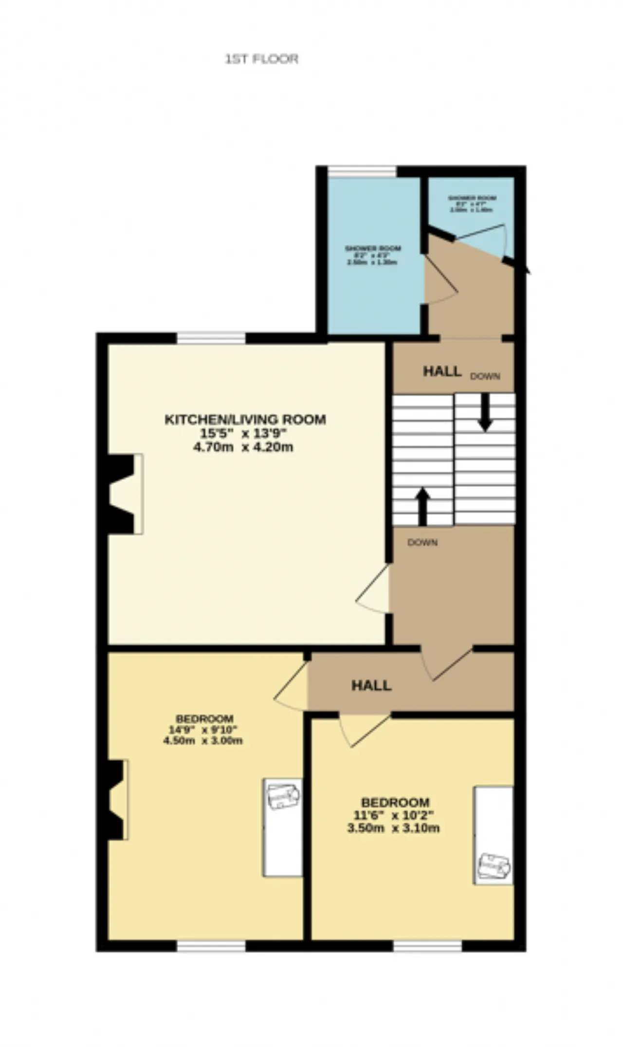 Shower Room 1.30m x 2.50m Located on the return with laminate flooring, wc, wash hand basin, corner shower.