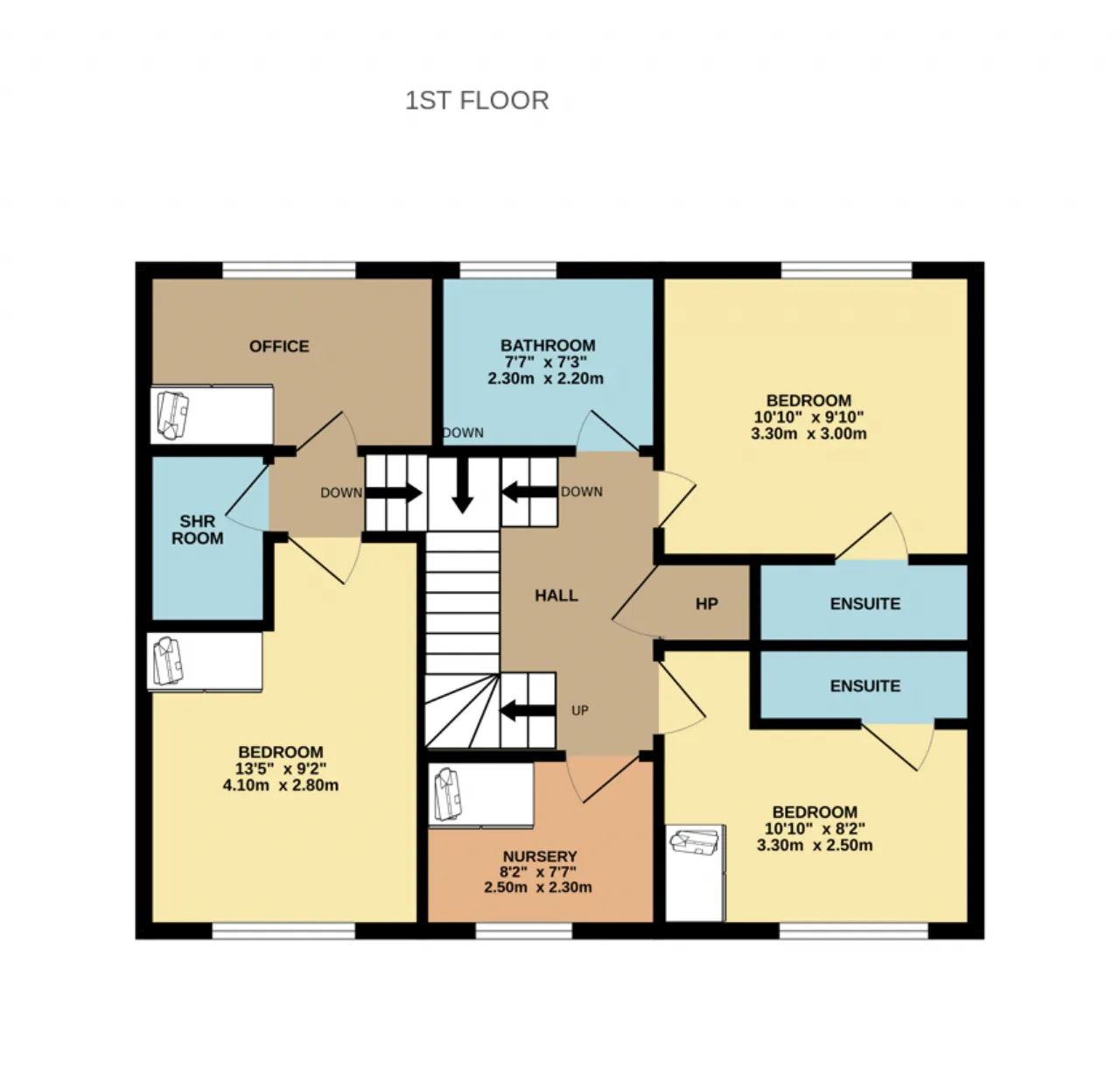 Nursery 2.30m x 2.50m With wooden flooring and built in wardrobes overlooking the front garden