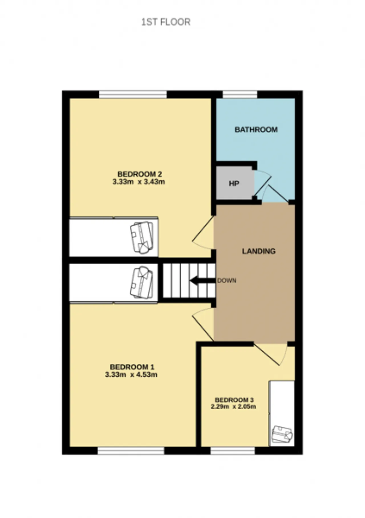 Bedroom 1 3.33m x 4.53m Double room looking over the front garden with carpet flooring and built-in wardrobes.