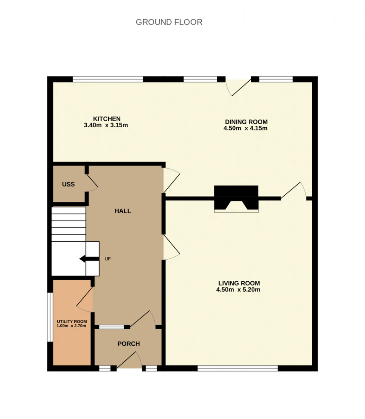 Utility Room 1.0m x 2.7m To left of hallway, with window to front and plumbed for washing machine and space for stacked dryer