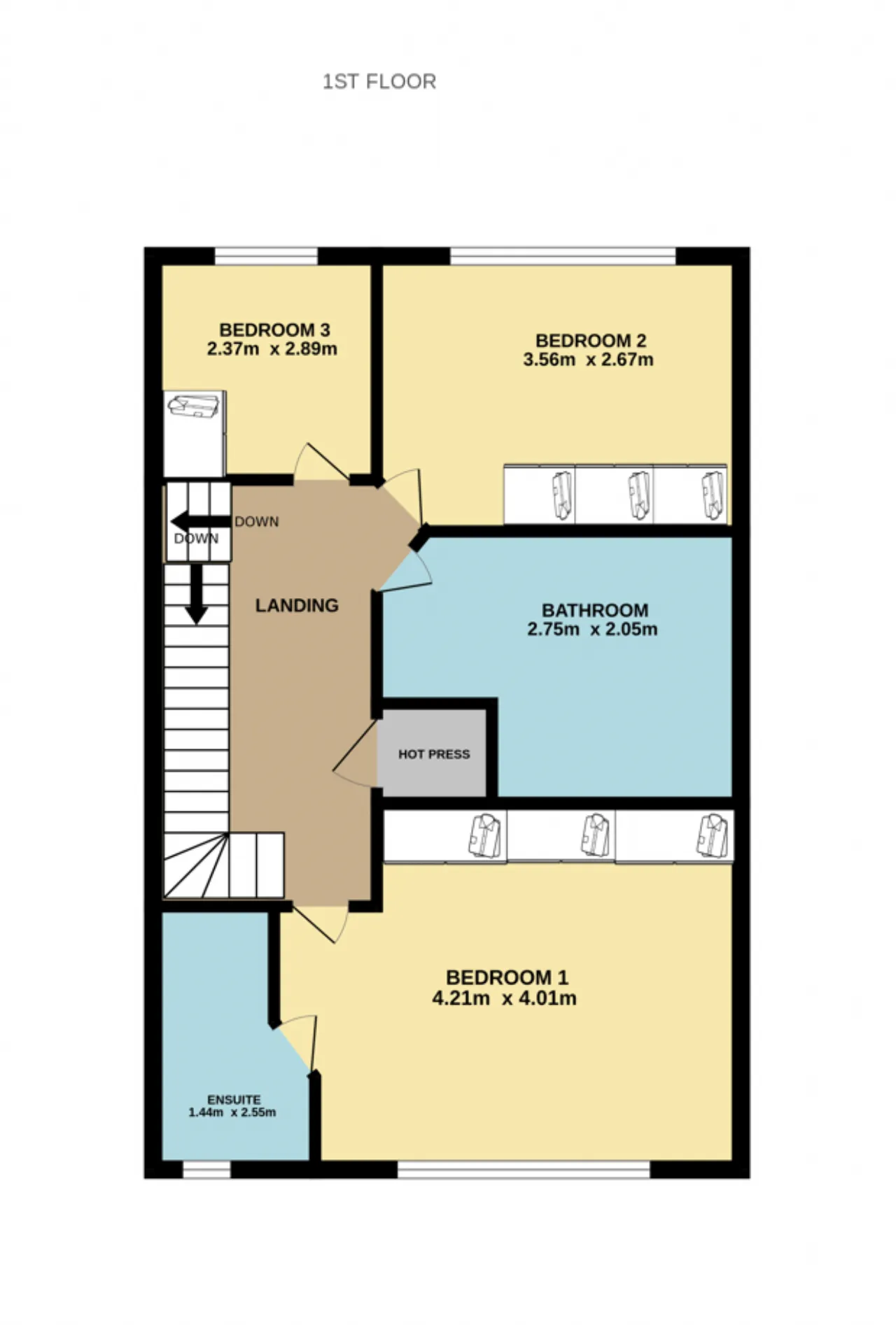 Bedroom 3 2.37m x 2.89m Single bedroom with carpet flooring, fitted wardrobes and window to rear.