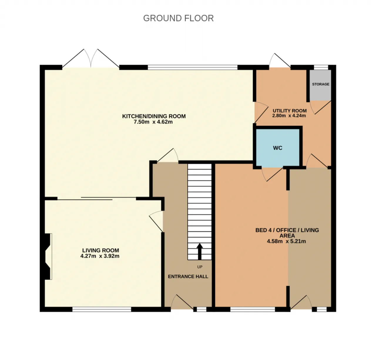 This impressive 3 / 4 bedroom home offers spacious and adaptable accommodation throughout, ideal for modern family living. The property features a well-proportioned living room, an open-plan kitchen/dining area with double doors opening to the rear garden, and access to the functional utility area. A large 4th bedroom / home office / sitting room, benefitting from a shower-room, completes the accommodation at this level. This room can be separately accessed from the front of the property and links through to the utility area, meaning it provides access from the front of the property through to the rear. It is a versatile space that suits a multitude of uses. Upstairs there are three bedrooms, a well-appointed family bathroom and a hot-press. Stira access leads to the attic, which currently provides additional storage space. There is also potential to convert the attic, as well as to further extend the existing property, should your needs require (subject to relevant planning permission).