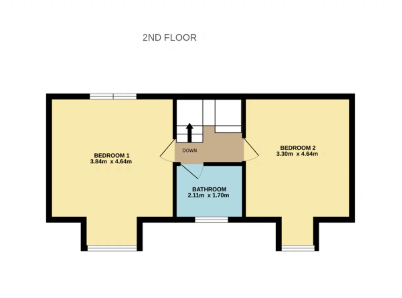 Bedroom 2 2.87m x 2.24m Currently in use as a home office with solid timber floor and window to front.