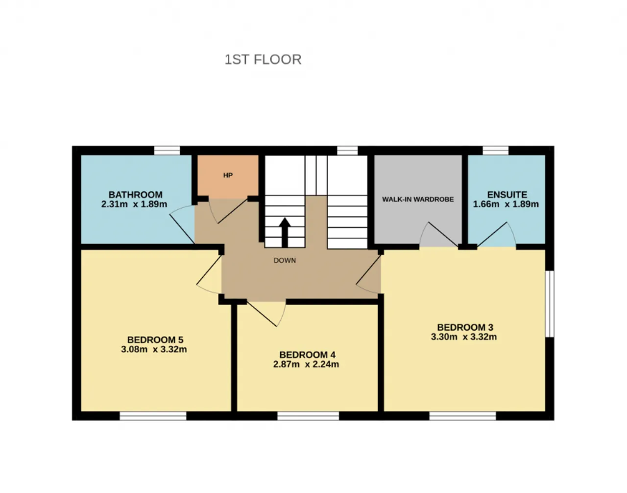 Bedroom 5 3.30m x 4.64m Double bedroom with timber flooring, fitted wardrobes and windows to front and side.