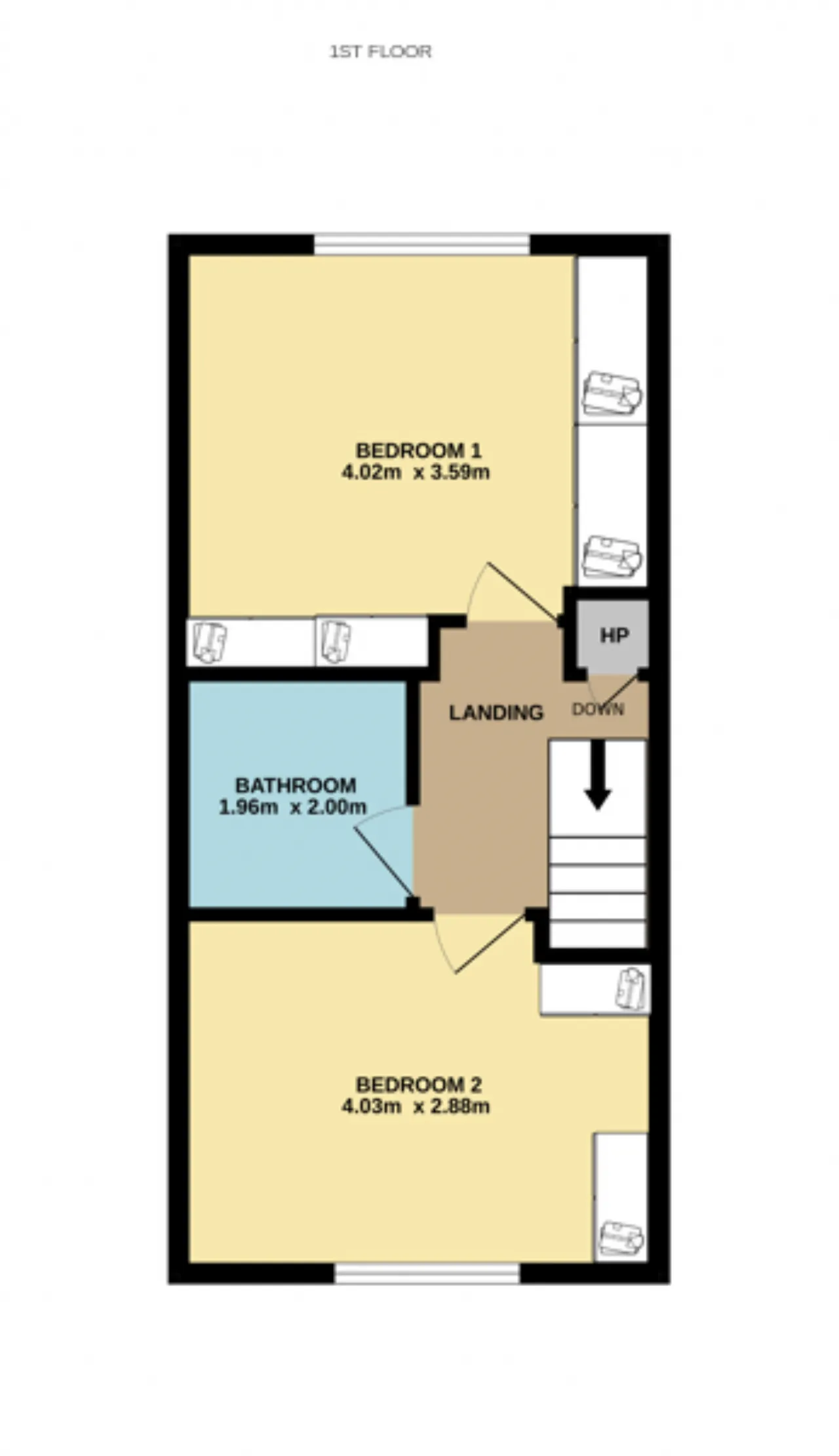 Bedroom 2 2.88m x 4.03m Double bedroom overlooking the front with carpet flooring and built in wardrobes.