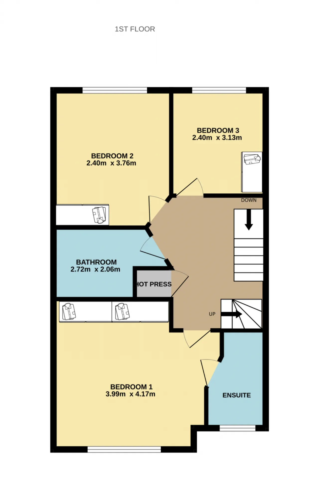 Bedroom 3 2.40m x 3.13m Single bedroom with laminate wood flooring, fitted wardrobes and window to rear.