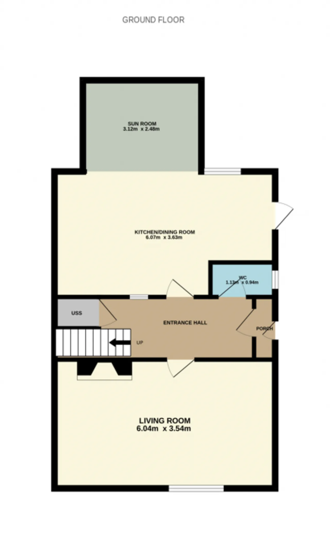 Sun Room 3.12m x2.48m With wooden floor, views of the garden and sliding doors to rear garden.