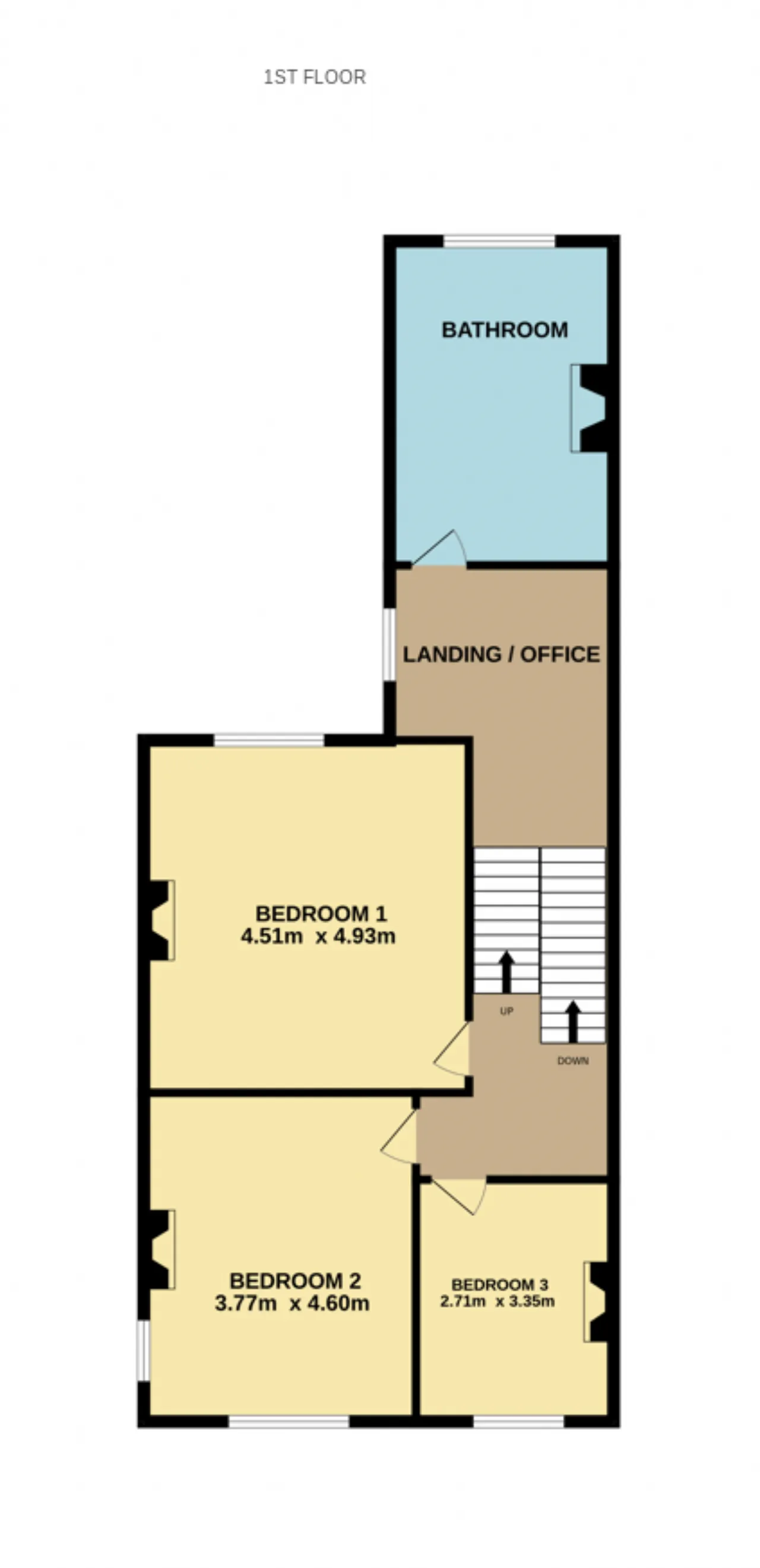 Bedroom 1 4.51m x 4.93m Large double room with ceiling coving, original wooden floors and large sash window overlooking rear garden. Original, painted, cast iron fireplace flanked by fitted wardrobes providing excellent storage.