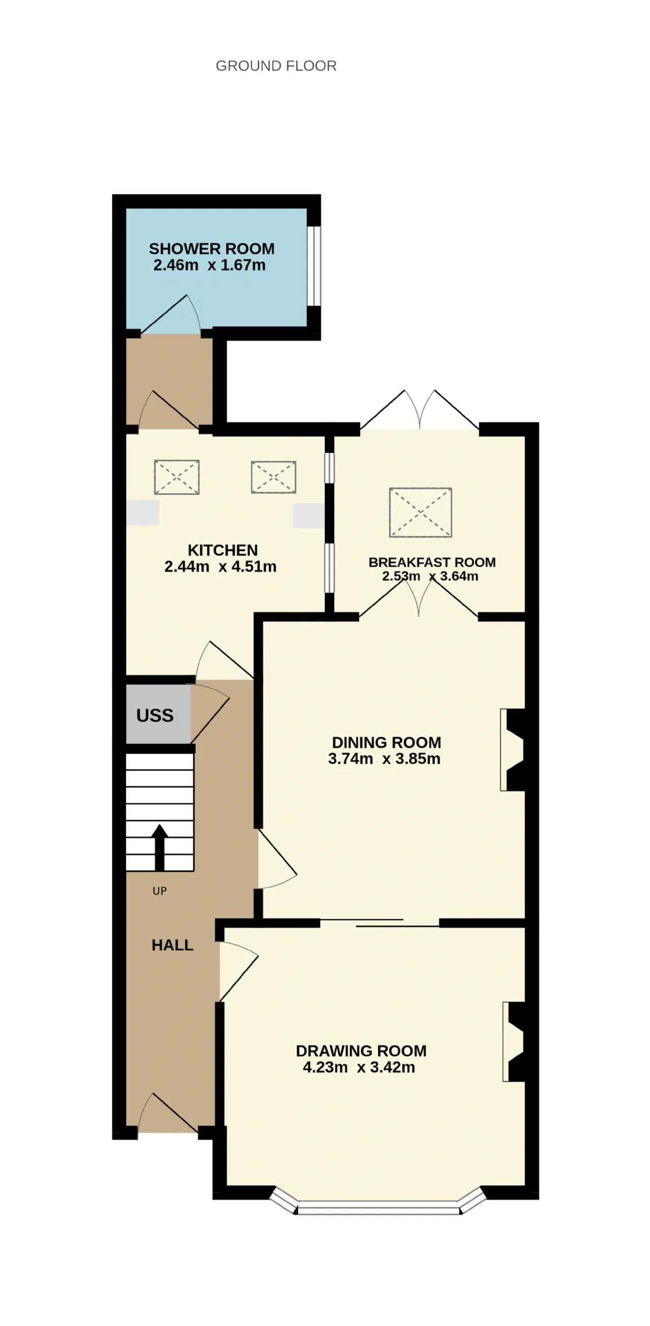 Shower Room 2.46m x 1.67m With w.c., w.h.b. and electric shower. Window proving natural light. Tiled flooring.