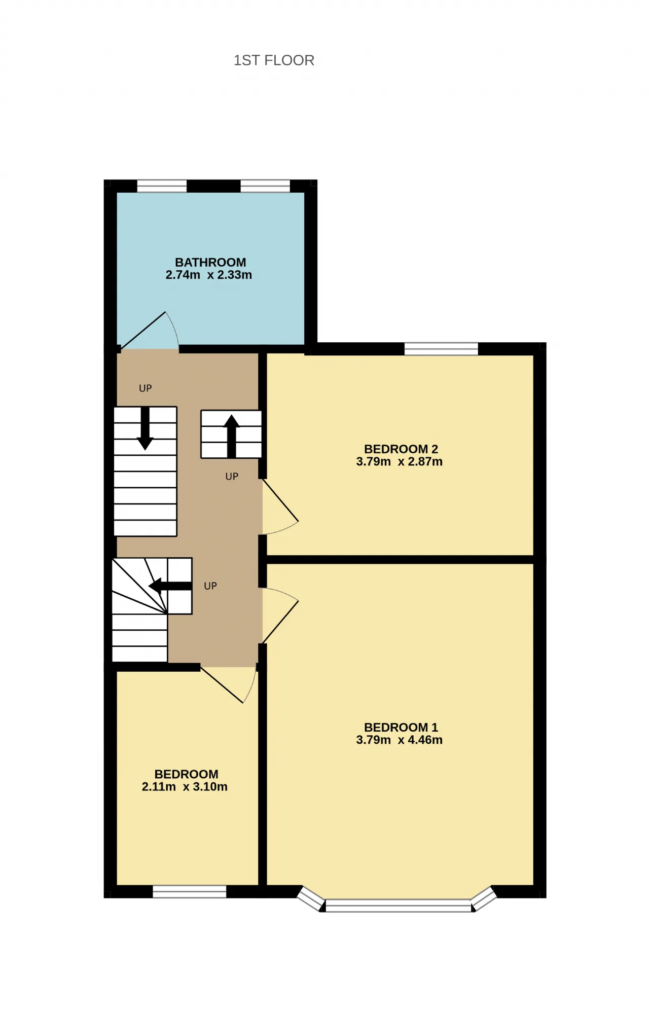 Bedroom 1 4.46m x 3.79m Spacious double bedroom with feature bay window overlooking front. Fitted wardrobe.