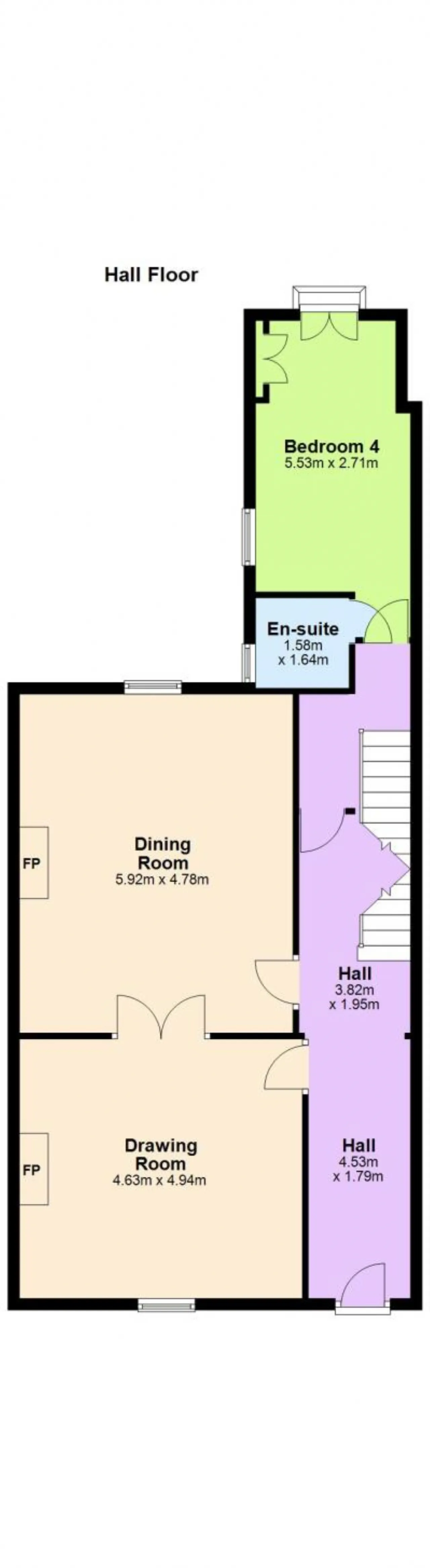 Drawing Room: 4.63m x 4.94m Timber flooring, decorative ceiling cornicing and centre rose, feature open fireplace with marble surround, large sash window with functioning shutters to rear.