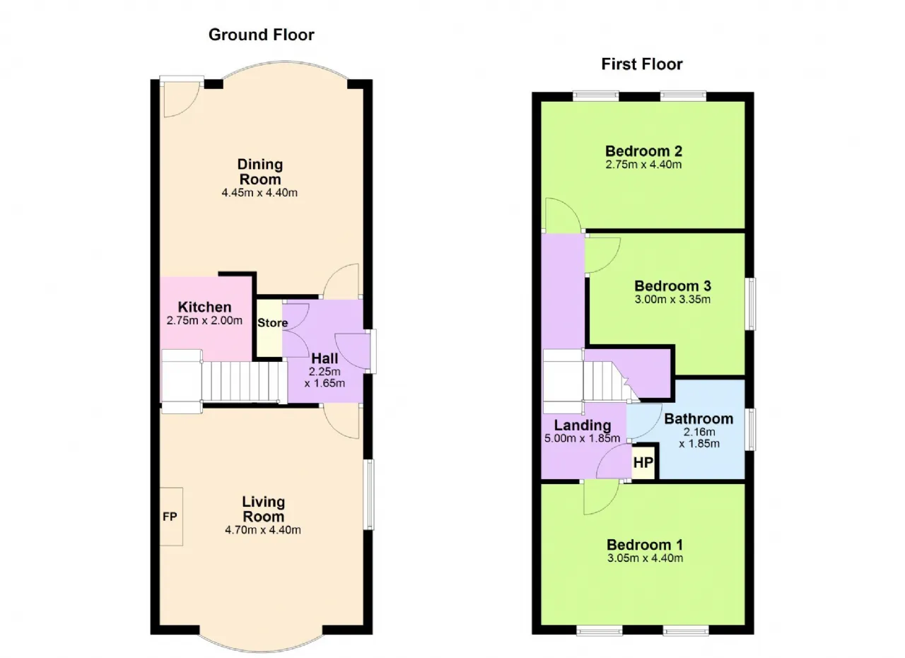 Bedroom 3 2.75m x 4.40m Carpet flooring, centre light, window to side, radiator.