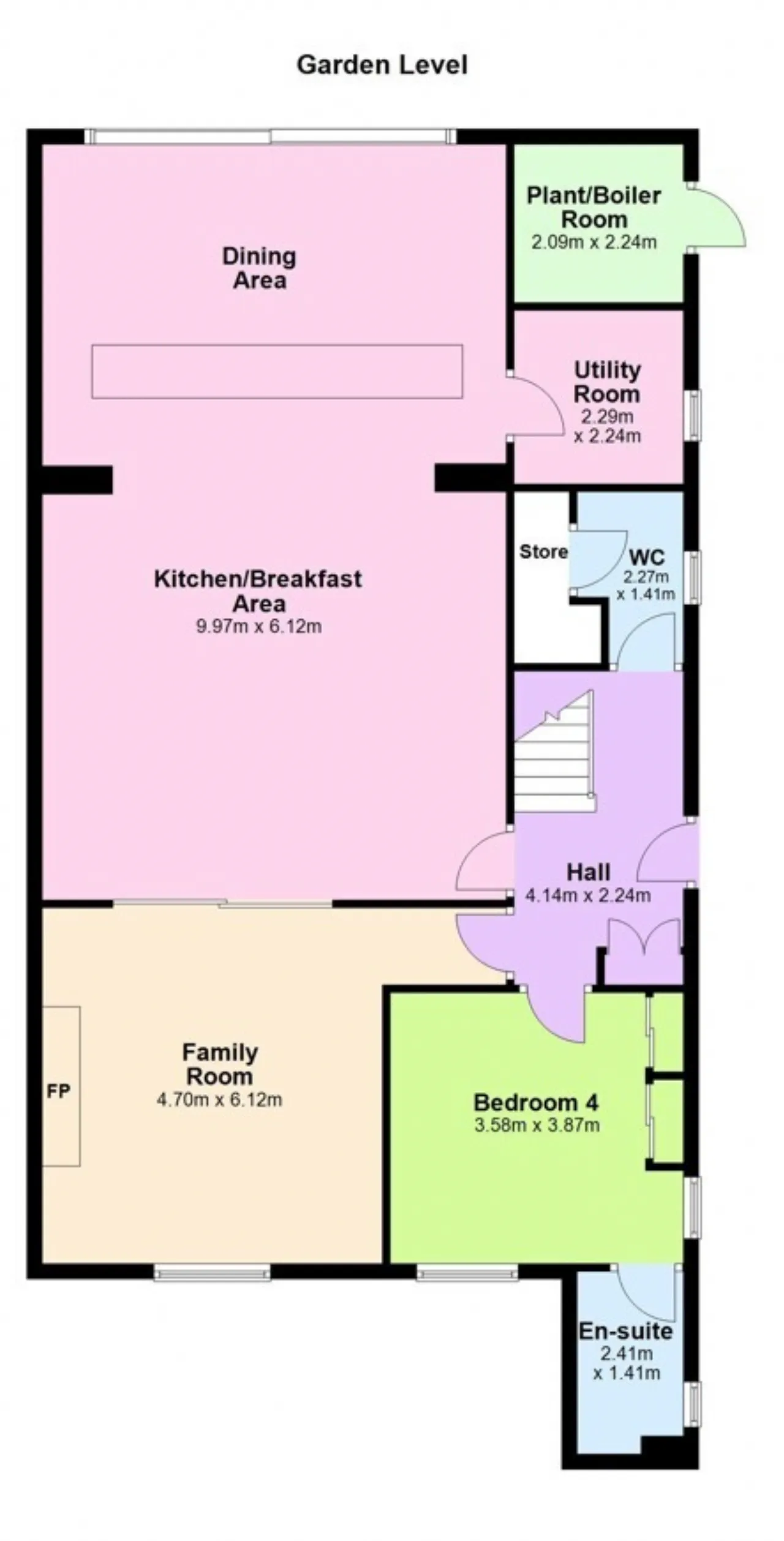 Garden Level Accessed internally from the hall level and also externally via a gated side passage.