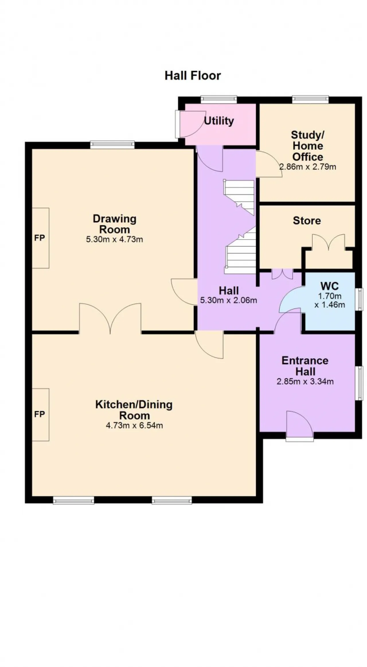 Sitting room/Bedroom 7 Currently in use as an office. Open fire with brick surround, sash window overlooking rear garden.