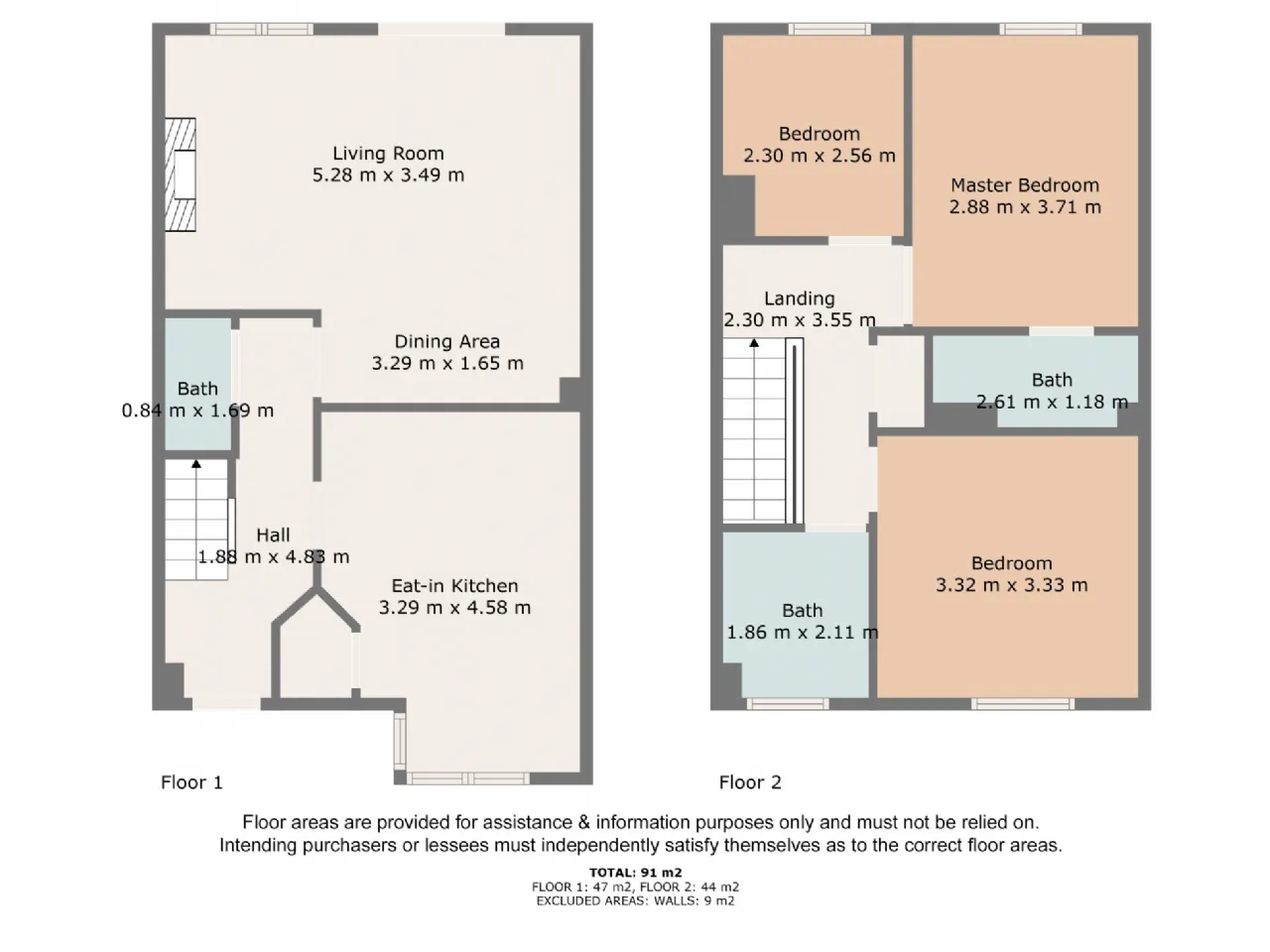 Bedroom 1 2.88m x 3.71m Good double room with wooden flooring, built in wardrobes and door to ensuite.