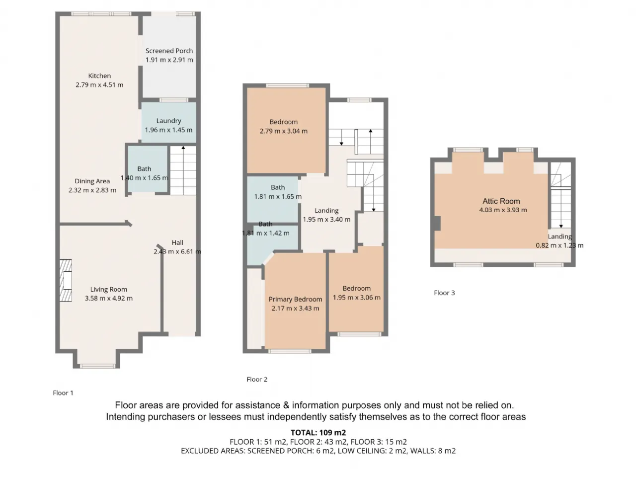 Kitchen /Dining Room 2.79m x 4.51m / 2.32m x 2.83m This room is full of natural light, with wainscotting, floor tiles, cast iron radiator, feature panel wall, feature brick wall. The dining area has built in storage seating. The kitchen has been recently renovated, fully fitted hand painted kitchen with double Belfast sink, integrated dishwasher, fridge freezer, oven & hob. Kitchen Island with seating and storage. Door to rear porch.
