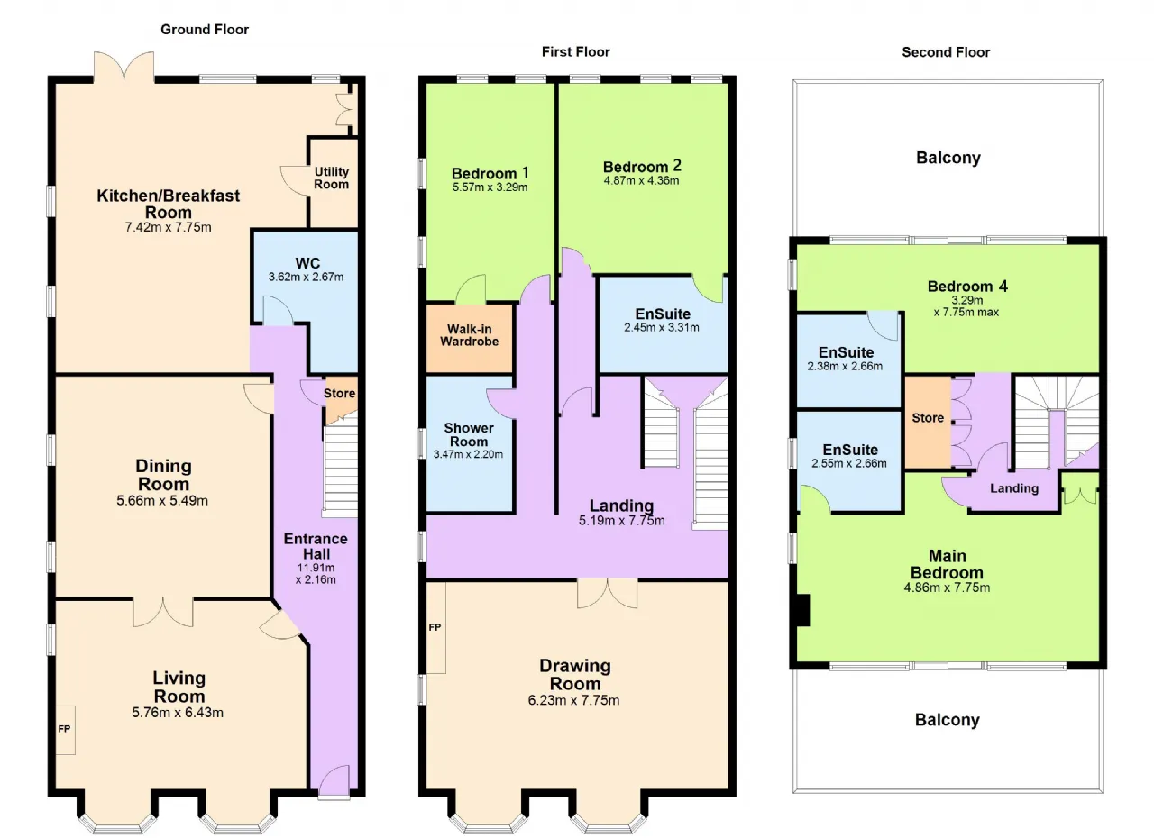 On the second floor, the principal bedroom occupies the front of the property and features wall-to-wall glazing that captures the spectacular coastal views. Sliding doors open onto a large, decked terrace, providing a perfect vantage point from which to enjoy the ever-changing seascape. The principal bedroom also benefits from an ensuite bathroom. To the rear of the 2nd floor is a wardrobe area leading into the fourth bedroom, which enjoys access to another substantial decked terrace with a desirable south-west orientation. This bedroom is further complemented by an ensuite shower room.