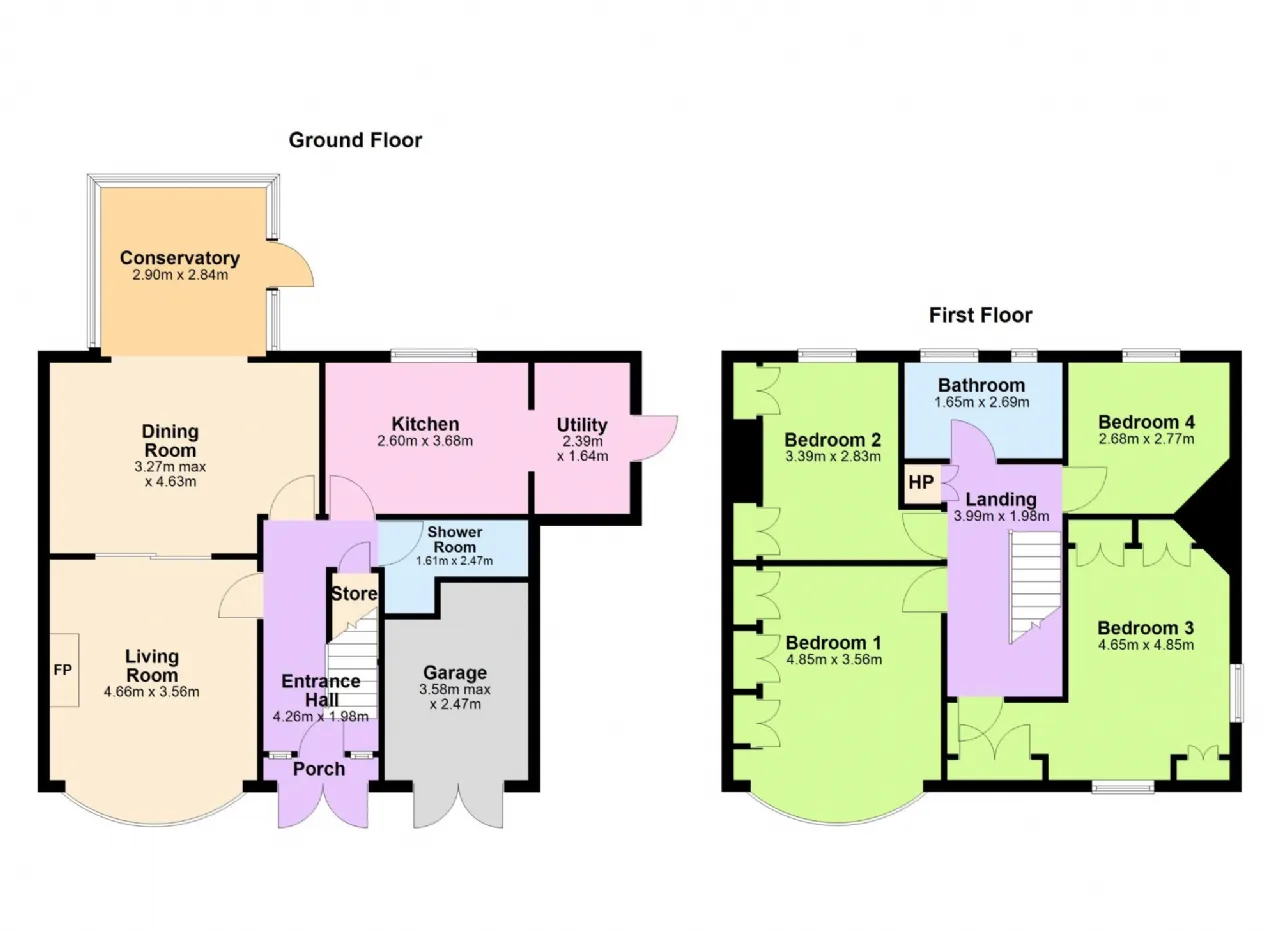 Main Bedroom 4.85m x 3.56m Large double bedroom to the front with ample wardrobe space and bay window.