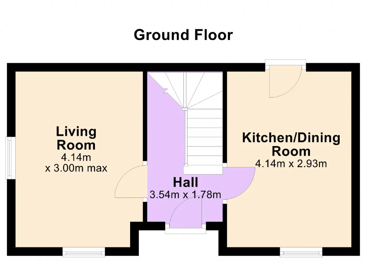 Bedroom 1 4.14m x 3.0m (currently in use as a second sitting room) Double bedroom. Feature open fireplace, dual aspect, laminate floor, dado rail.