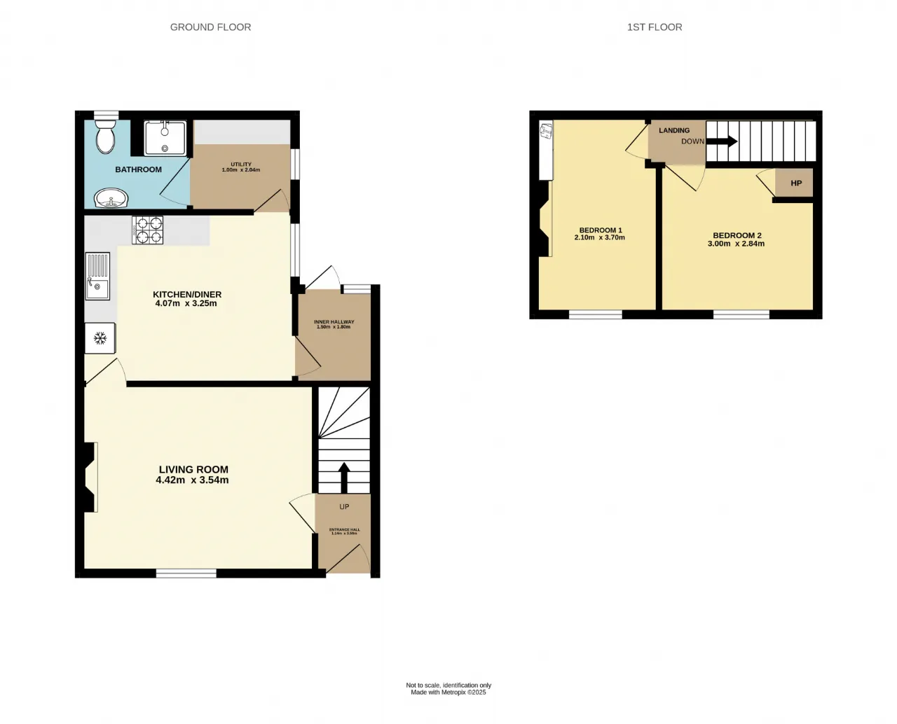 Upon entering this charming property, you are greeted with a spacious entrance hall with stairs to first floor landing, which opens to the main living room. The living room itself boasts generous proportions with a front-facing window, feature fireplace, wall mounted electric heater, laminate flooring and leading through to the kitchen/dining area.