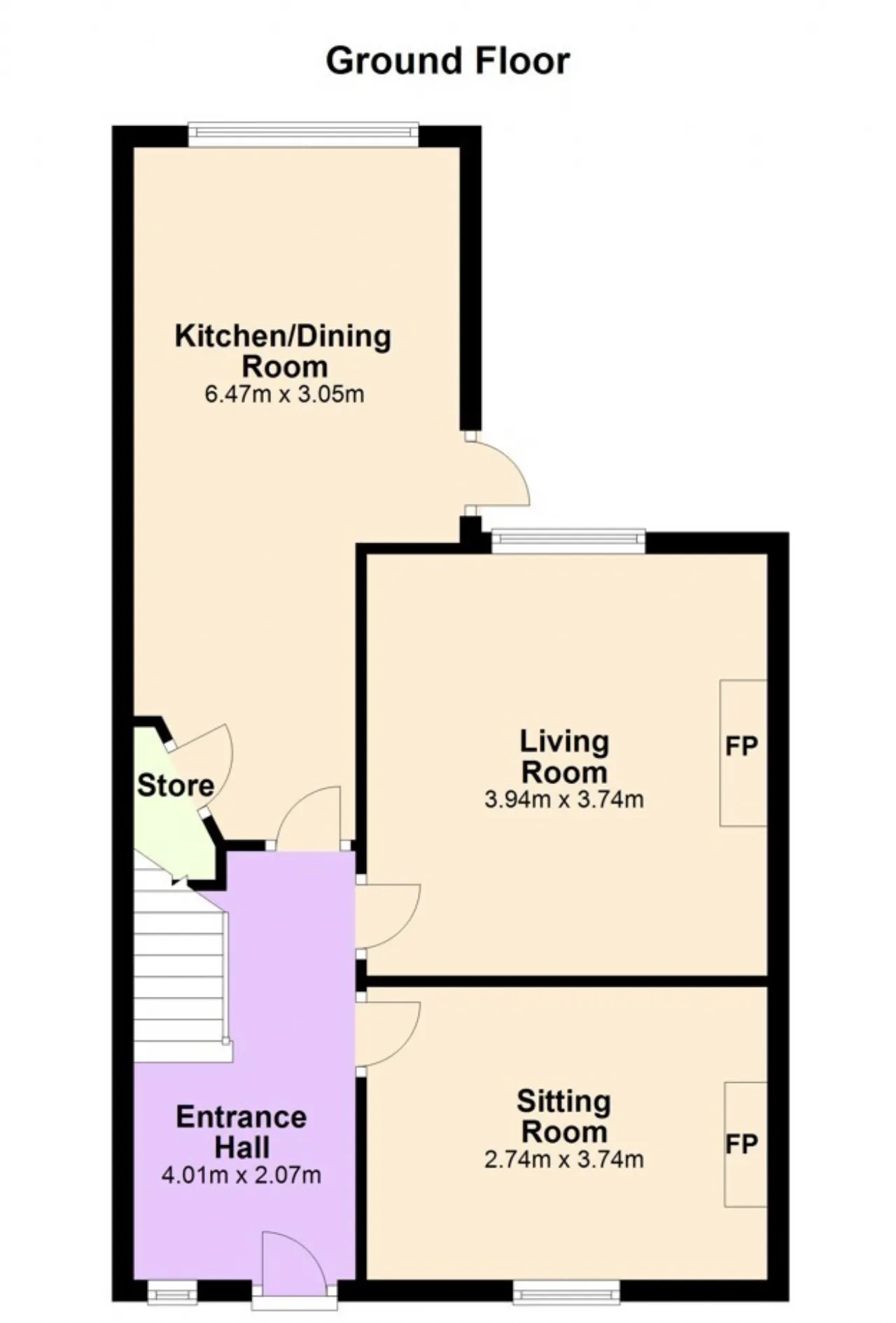 Sitting Room 2.74m x 3.74m With wood flooring, window overlooking front garden and original open fireplace with attractive tiling.