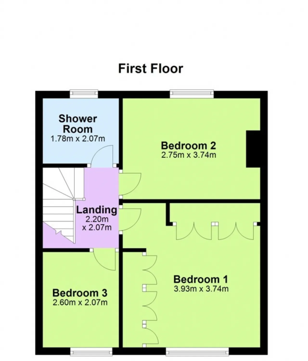 Shower Room 1.78m x 2.07m A generous modern fully tiled shower room with shower, wash hand basin and w.c.
