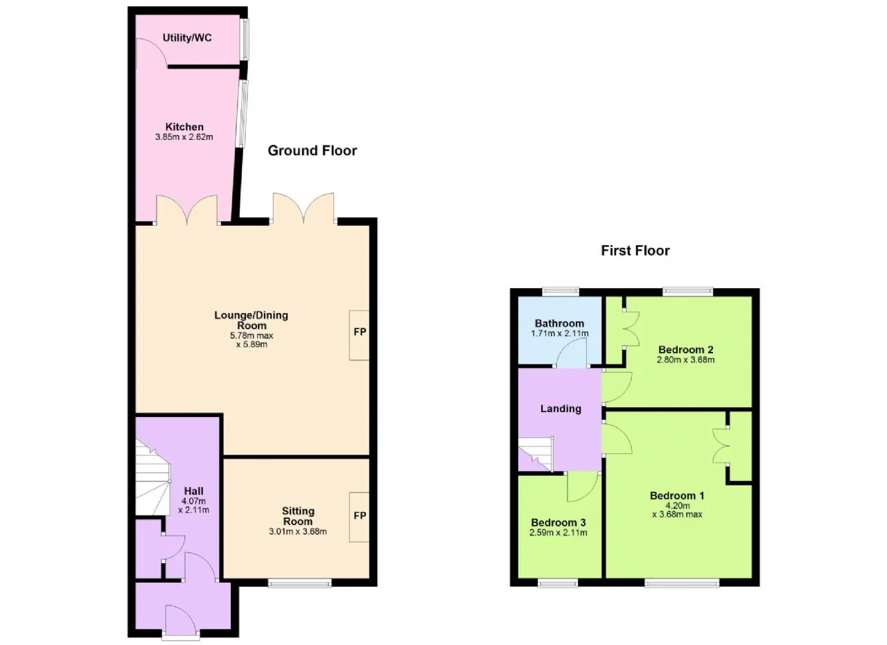 Sitting Room 3.01m x 3.68m With laminate wood flooring, open fireplace and window overlooking front garden.