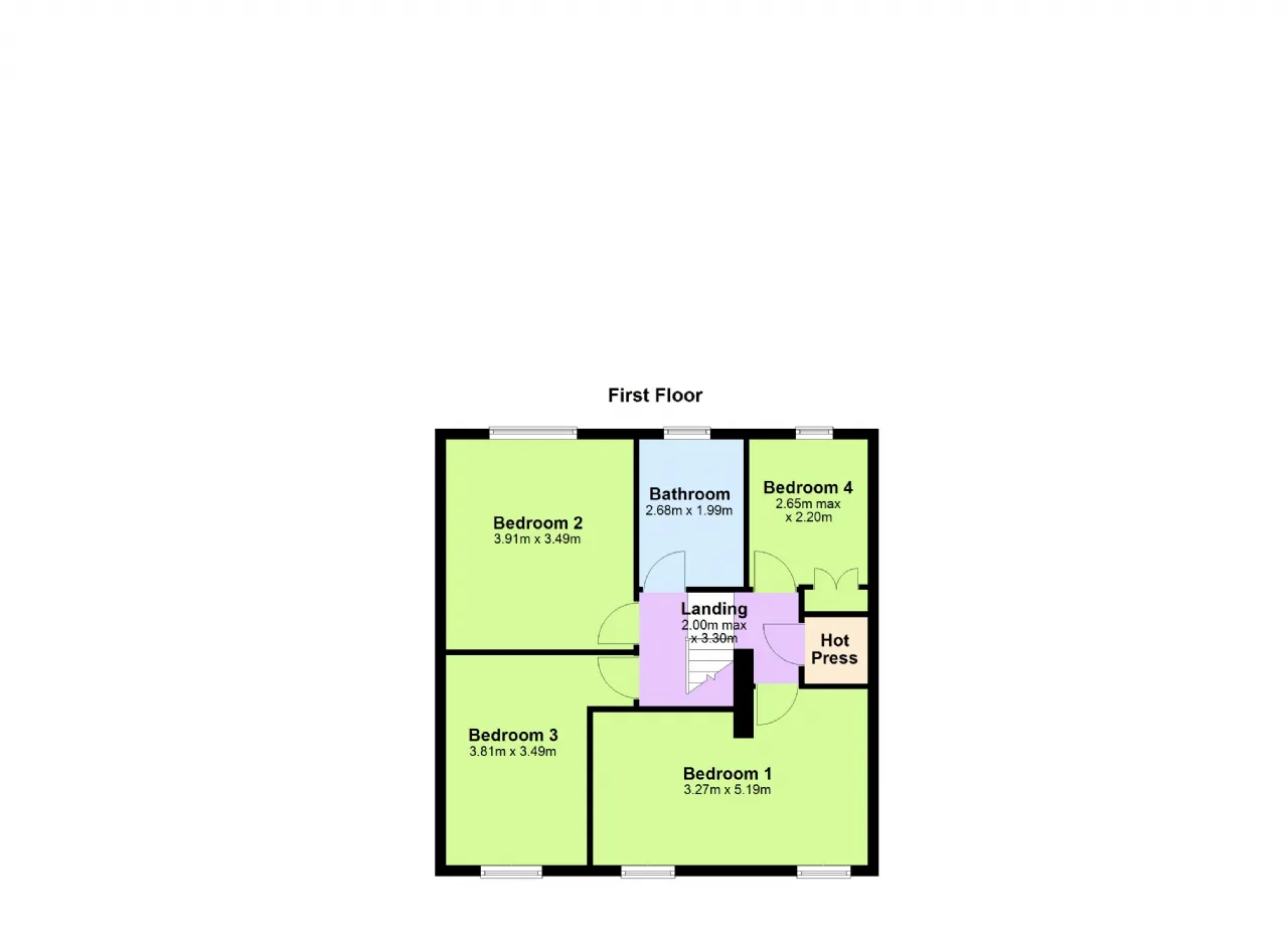 Landing 2.00m x 3.30m With carpet flooring, velux window. Hotpress.