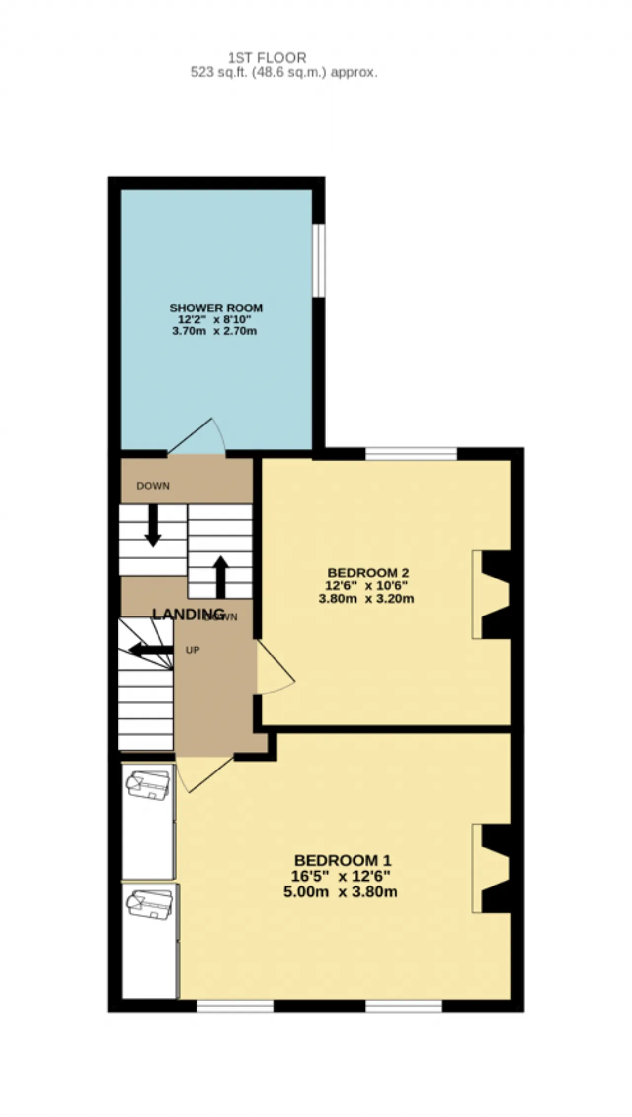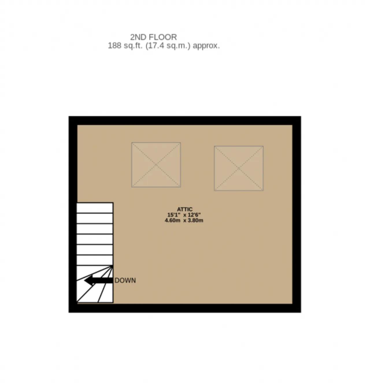 As you ascend to the first floor, located on the return, a generously sized shower room beautifully finished with tiled flooring, twin wash hand basins, a freestanding bath, separate shower and WC. A well-balanced layout combines practicality with style. Continuing to the first floor, you will find bedroom two positioned to the left. This well-proportioned room is finished with soft carpet flooring and decorative coving, while a gas fireplace serves as a charming focal point, adding both character and warmth to the space. Next, you enter bedroom one, a spacious double room positioned at the front of the property. This bright and inviting space features carpet flooring, decorative coving, built-in wardrobes offering excellent storage and a gas fireplace that adds a touch of period charm. Returning to the landing and continuing up the stairs, you reach the attic space, finished with carpet flooring and illuminated by two skylights that flood the room with natural light. A charming, exposed brick wall adds character, while ample storage makes this a practical and flexible area.