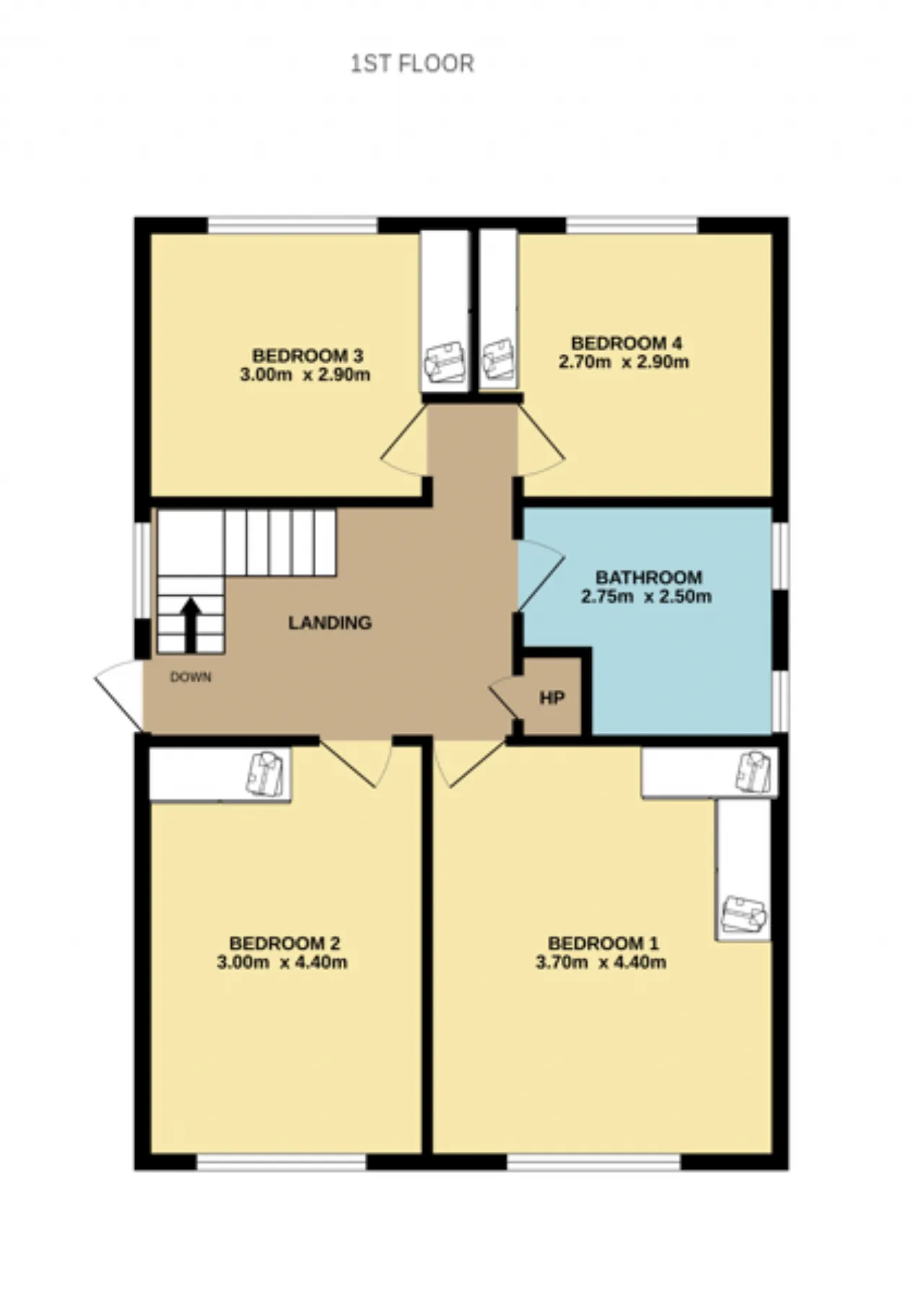 Bedroom 4 (Rear) 2.70m x 2.90m Fitted wardrobes, Carpet