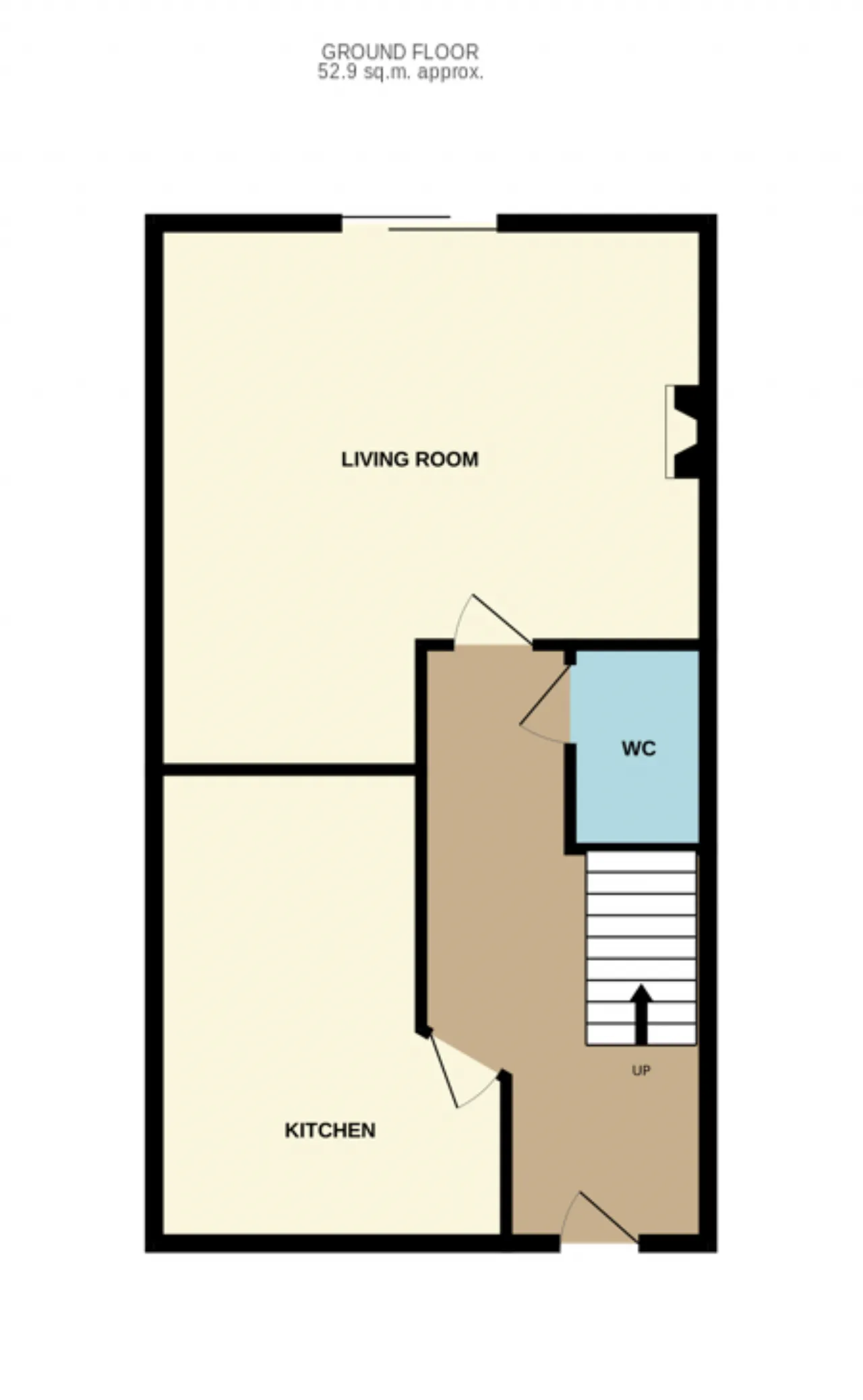Guest wc 1.1m x 1.2m Wc, wash hand basin, tiled walls and flooring.