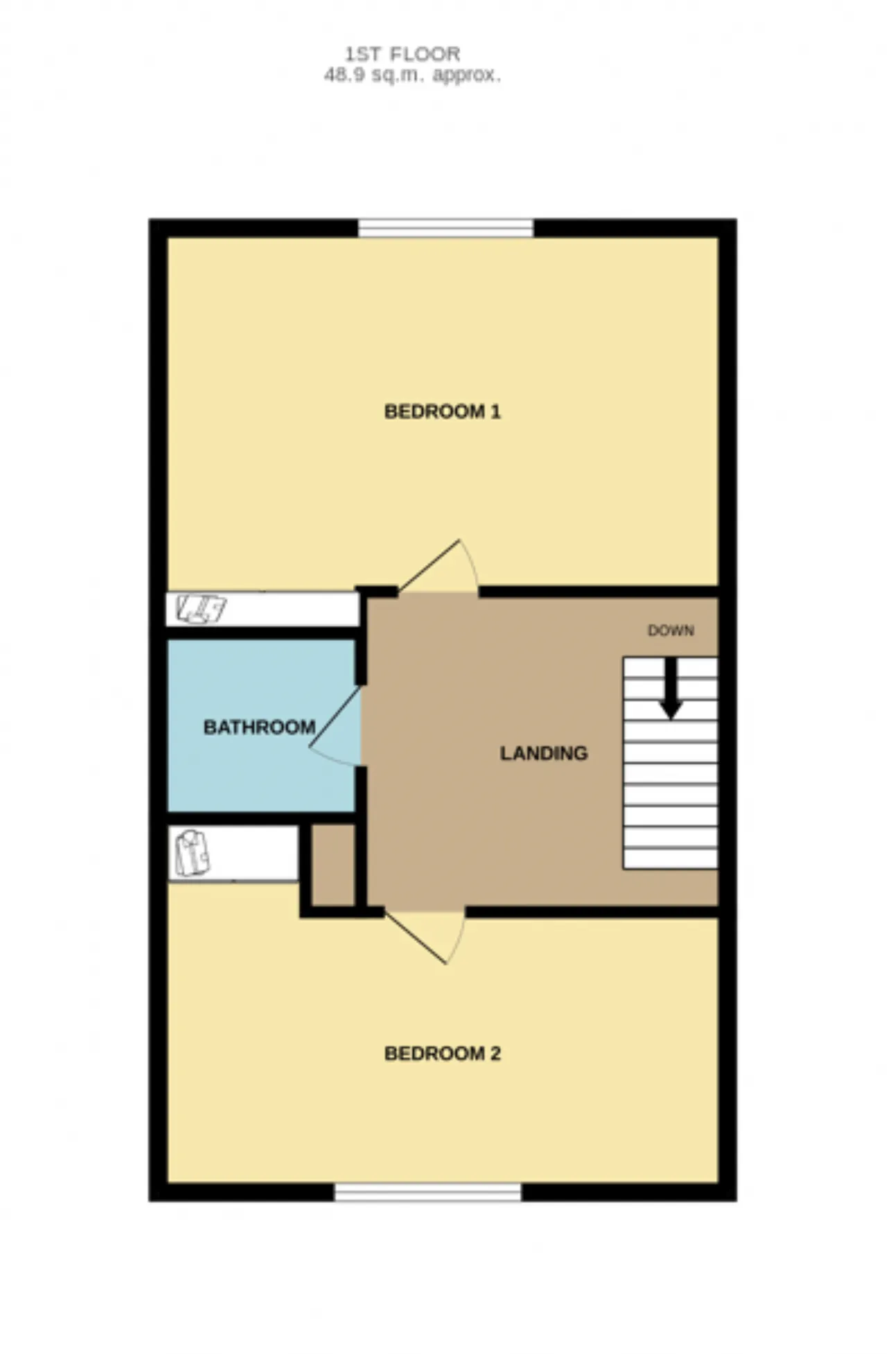 Landing 2.1m x 3.5m Carpet, storage, access to attic