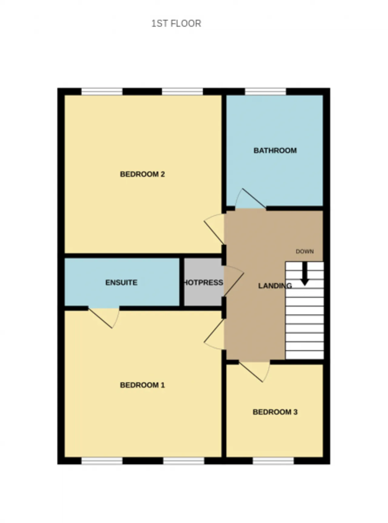 Landing 3.96m x 2.03m Carpet, attic access and hot press
