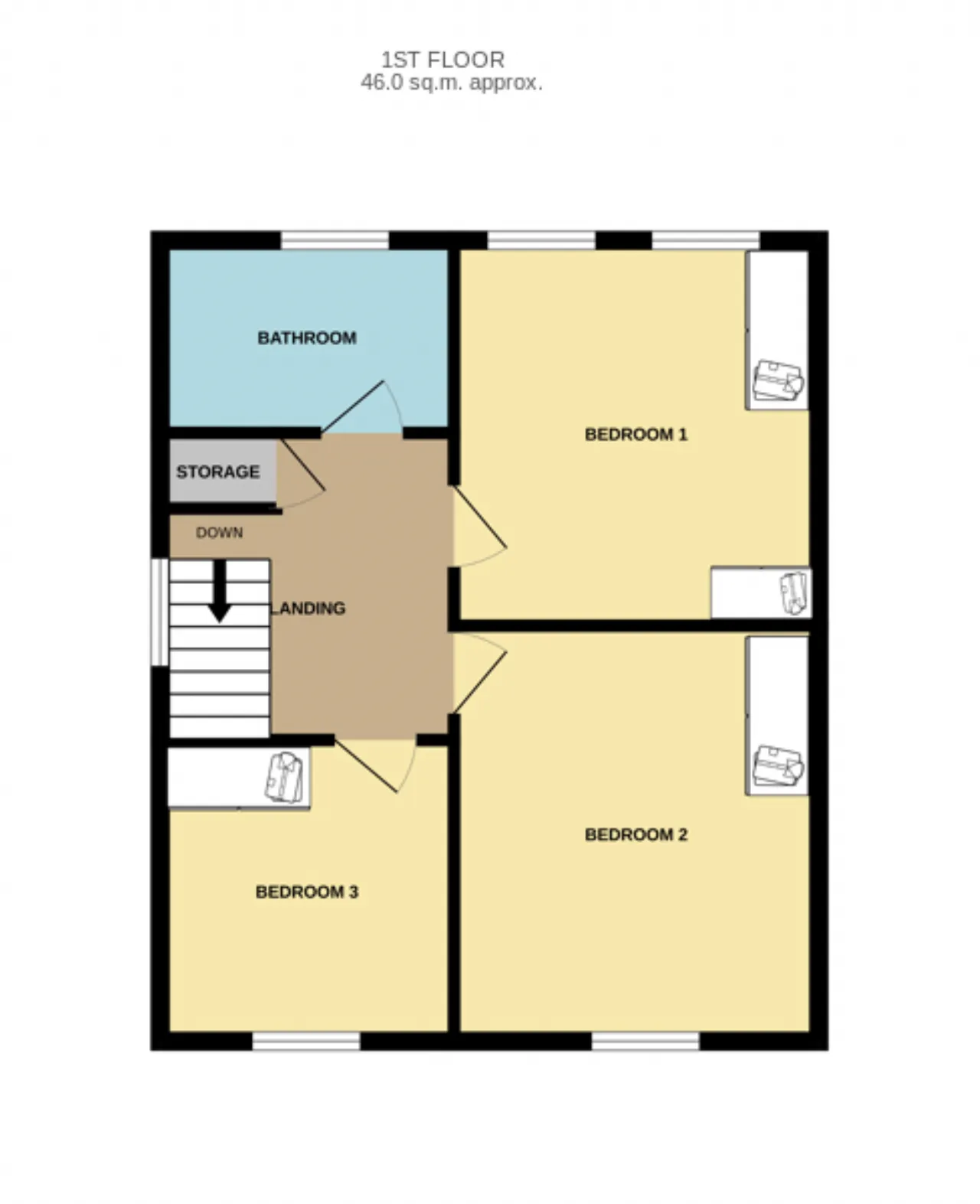 Bedroom 2 3.80m x 3.40m Built in wardrobes, double glazed window to rear.