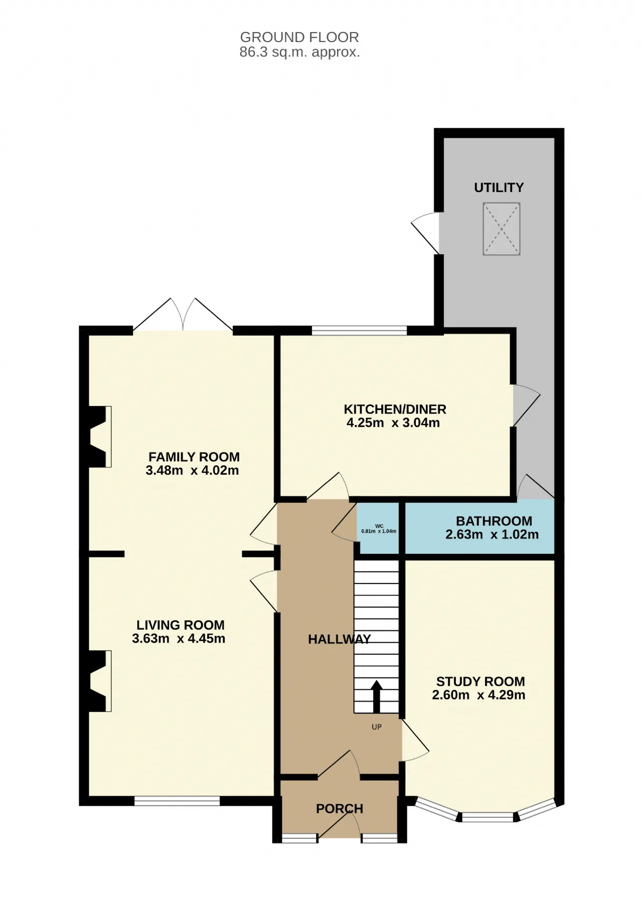 Extending to c.146sq.m/1,572sq. ft the accommodation comprises briefly; entrance hall, generous living room which interconnects with the family room. A kitchen/dining room which overlooks the glorious southeast facing rear garden, to the side there is a utility space and access to the boiler house. A guest wc and a versatile study room complete the ground floor. Upstairs, there are 4 generous bedrooms, a family bathroom and a separate WC completing the accommodation.