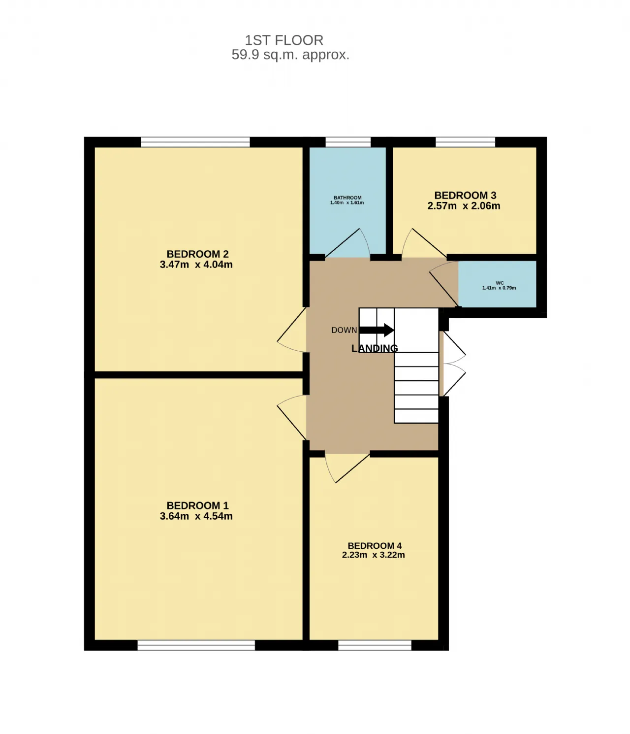 Bedroom 2 4.04m x 3.47m Double room to the rear which features fitted wardrobes and carpet flooring.